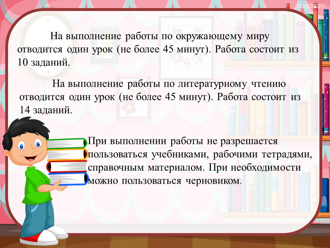 На выполнение работы по литературному чтению отводится один урок (не более 45 минут). Работа состоит из 14 заданий.