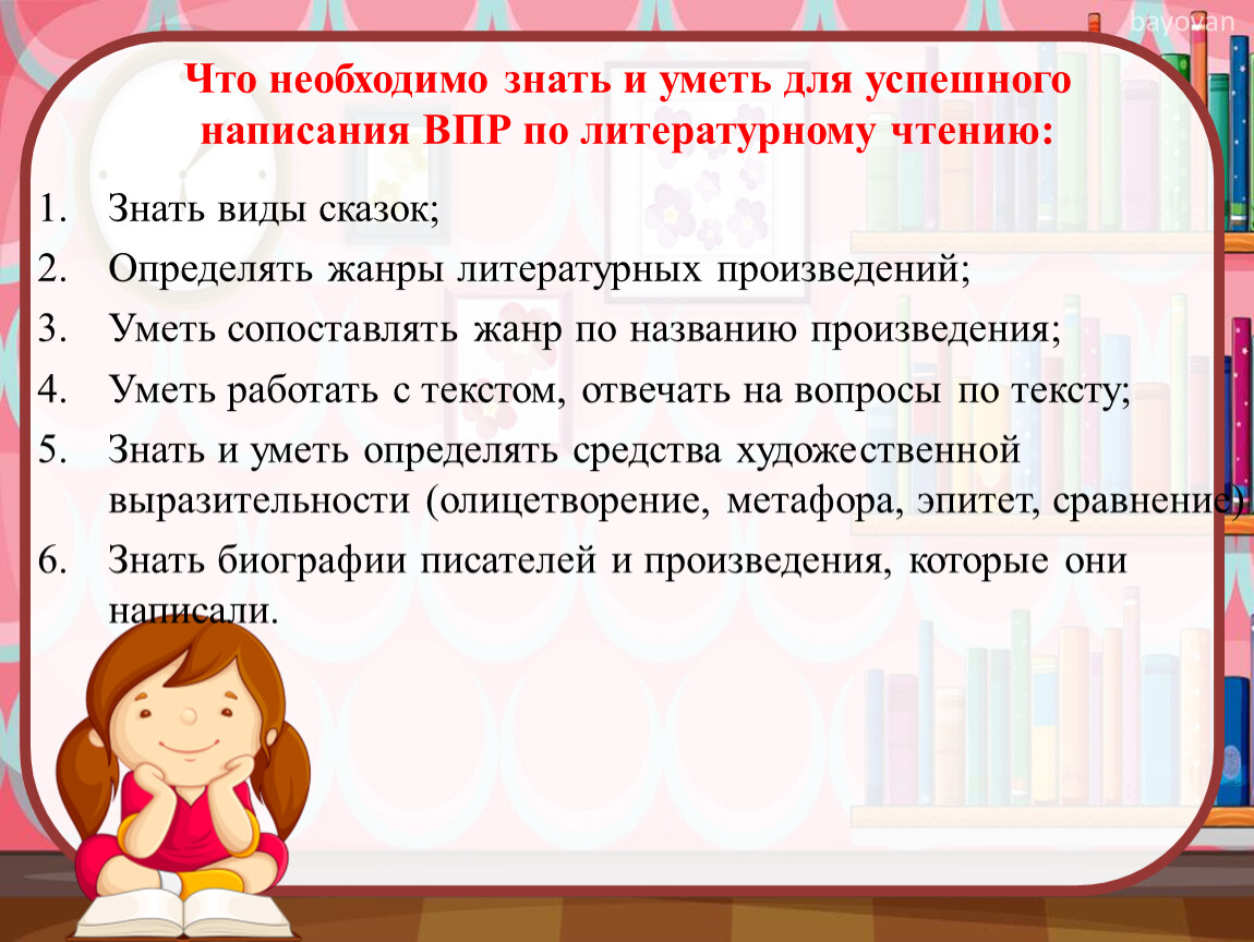 Что необходимо знать и уметь для успешного написания ВПР по литературному чтению: