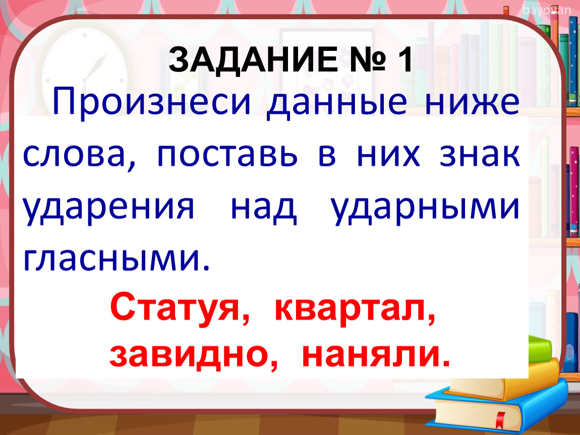 Произнеси данные ниже слова, поставь в них знак ударения над ударными гласными.