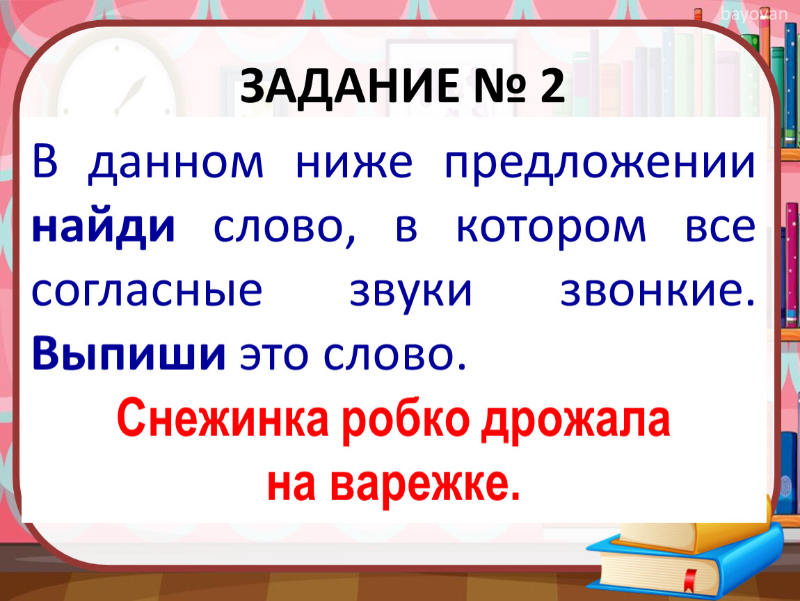 В данном ниже предложении найди слово, в котором все согласные звуки звонкие. Выпиши это слово.