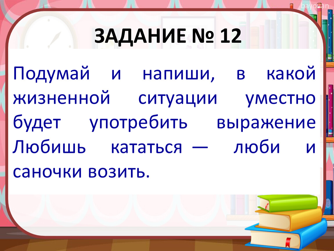 Подумай и напиши, в какой жизненной ситуации уместно будет употребить выражение Любишь кататься — люби и саночки возить.