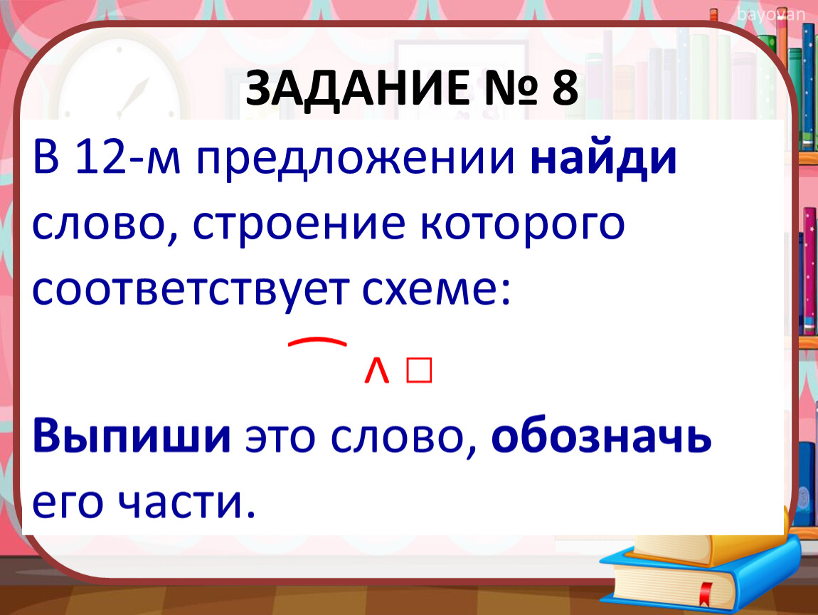 В 12-м предложении найди слово, строение которого соответствует схеме: