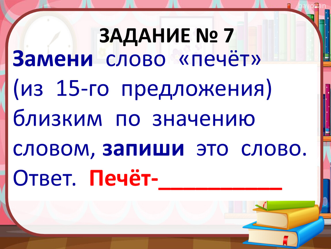 (из 15-го предложения) близким по значению словом, запиши это слово.