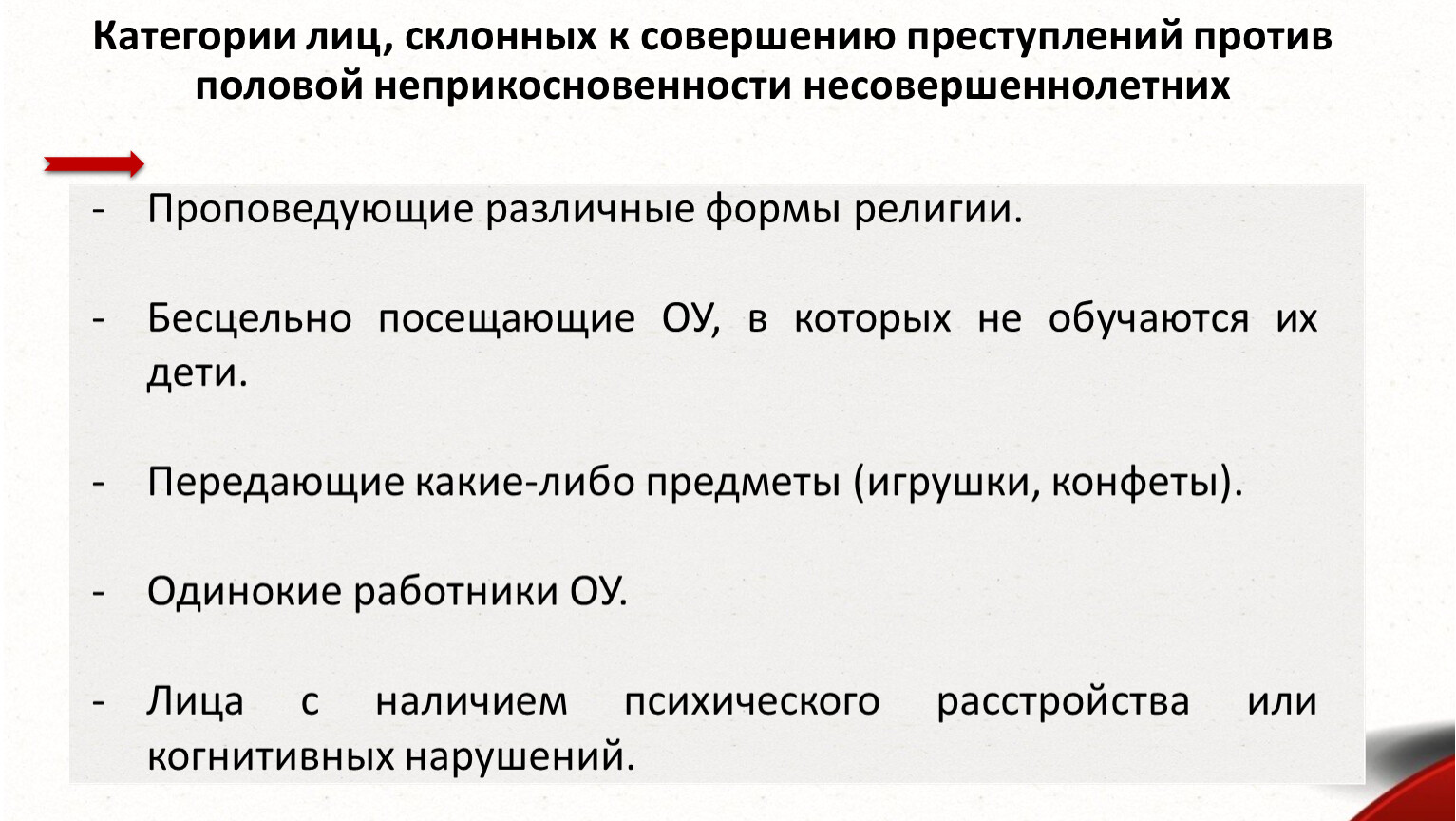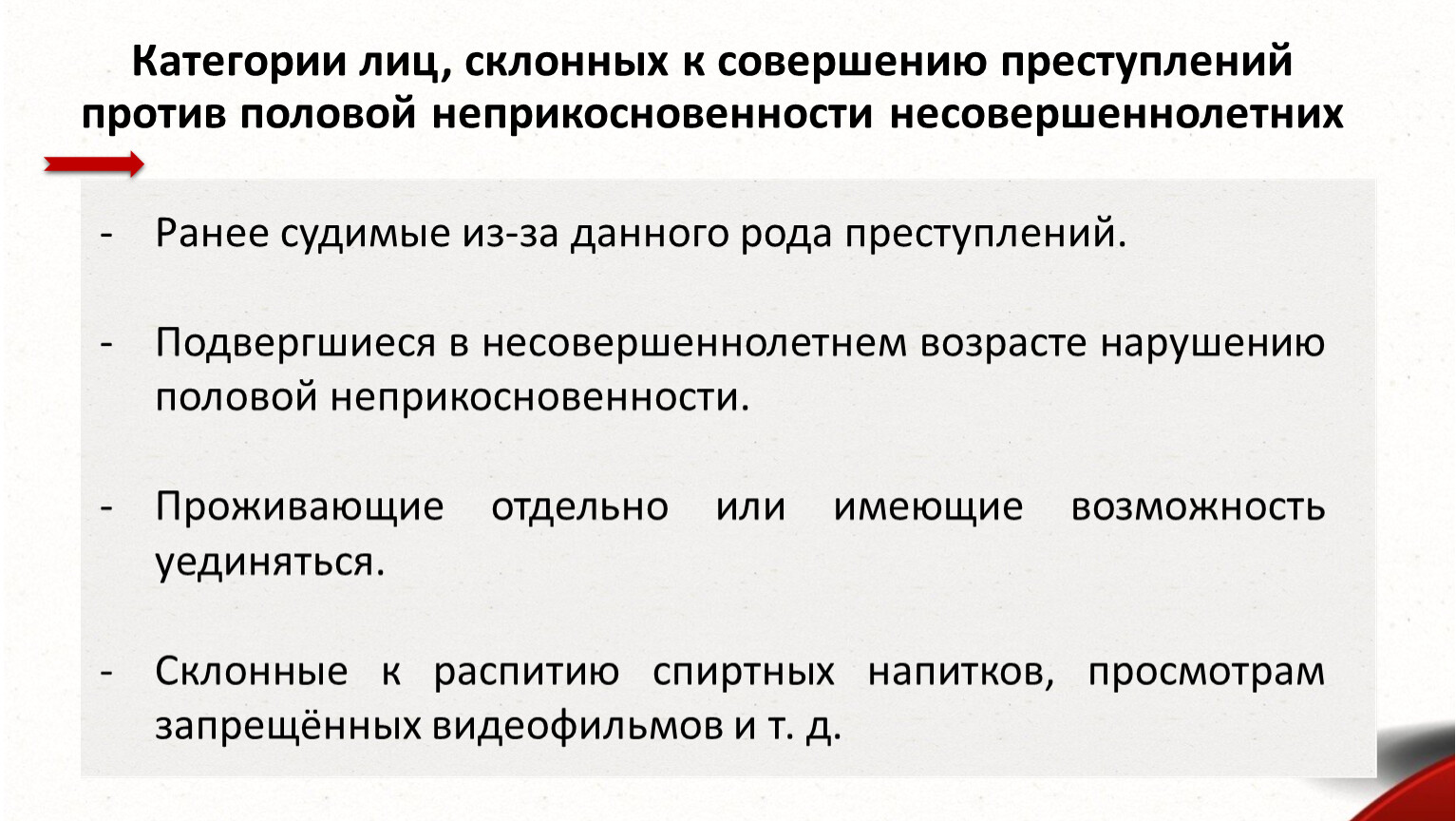Категории лиц, склонных к совершению преступлений против половой неприкосновенности несовершеннолетних
