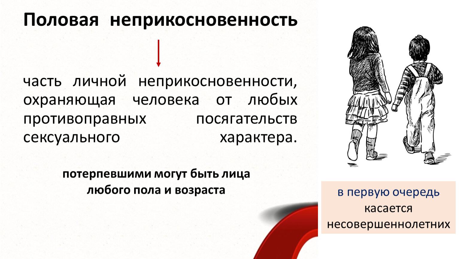 Половая неприкосновенность часть личной неприкосновенности, охраняющая человека от любых противоправных посягательств сексуального характера.