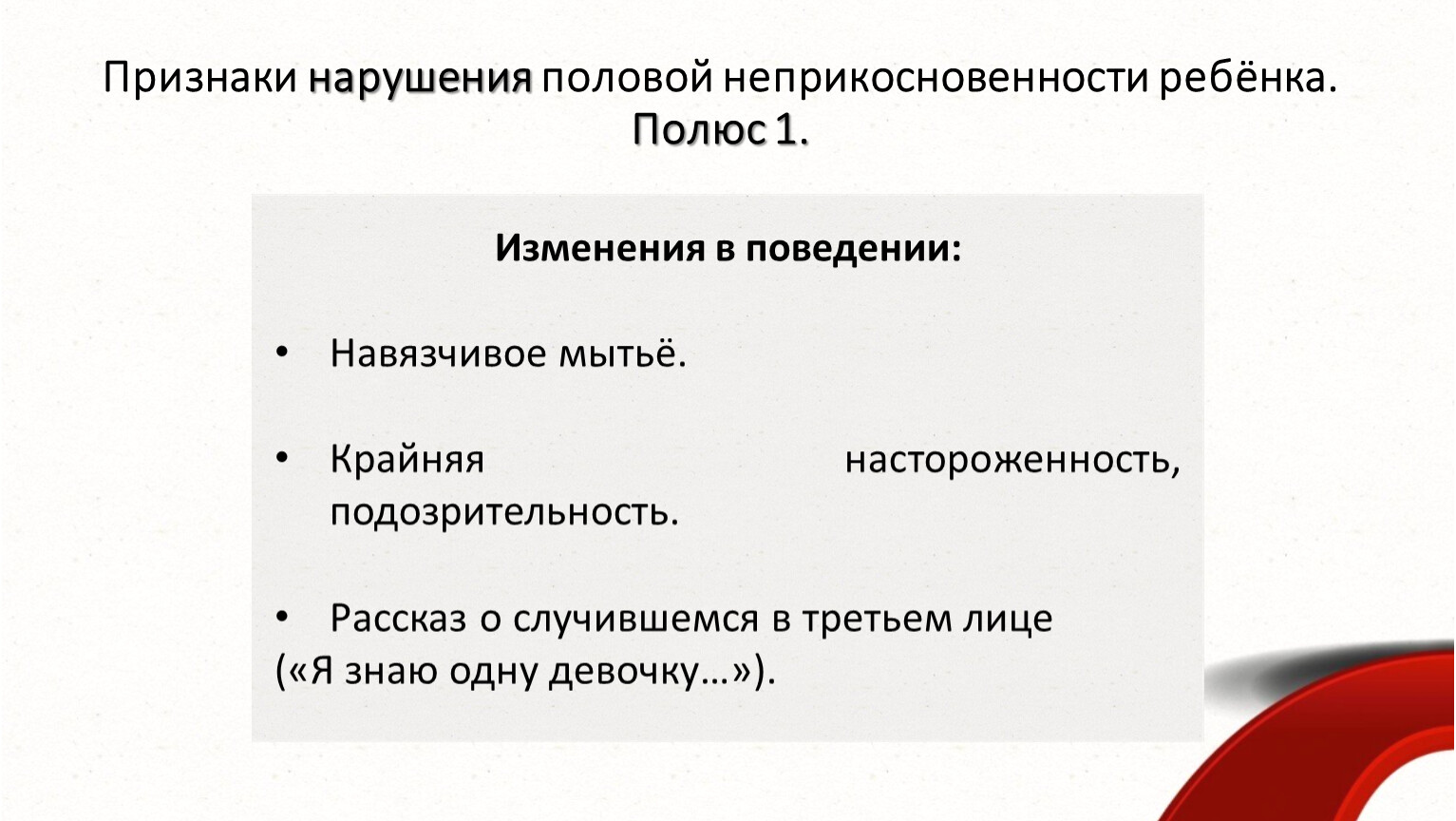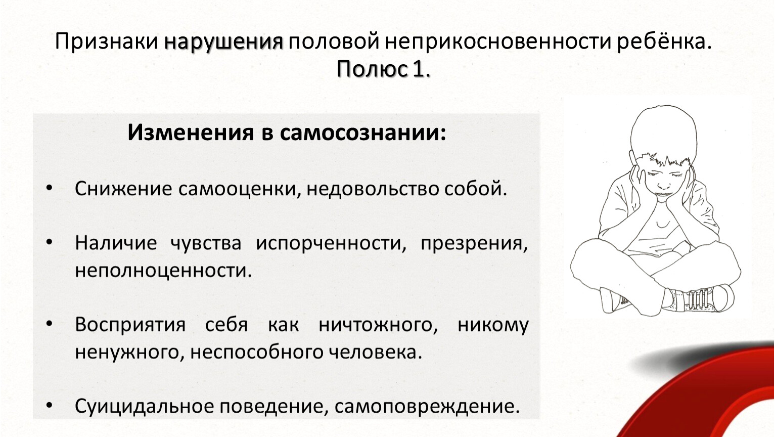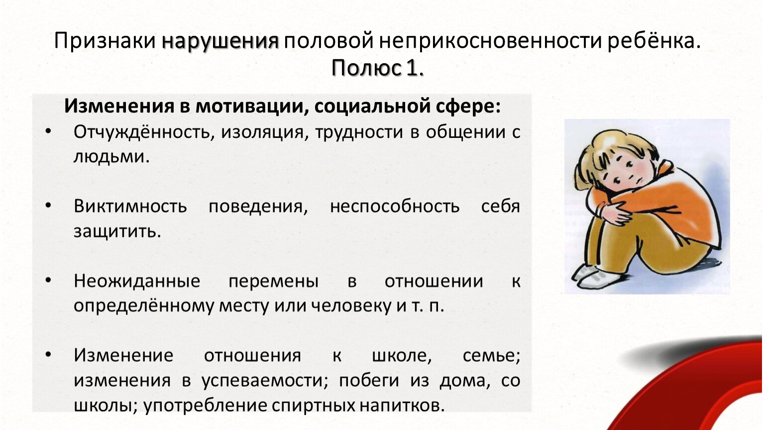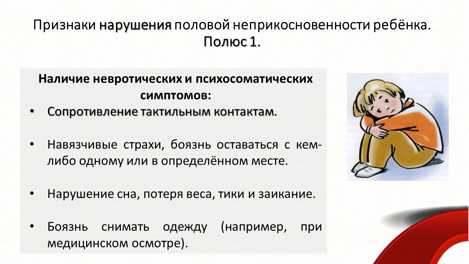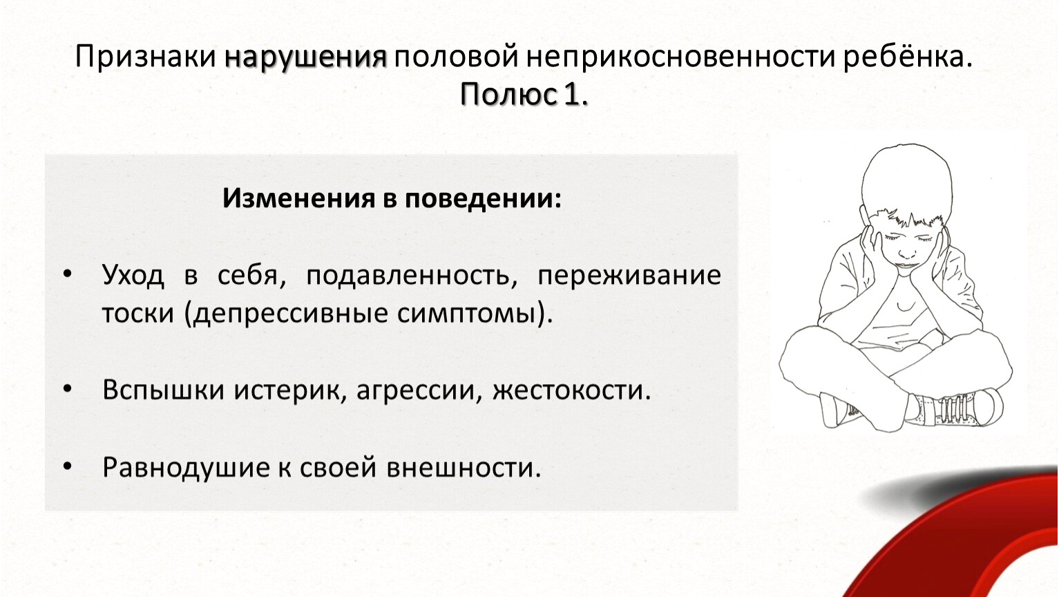 Признаки нарушения половой неприкосновенности ребёнка. Полюс 1.