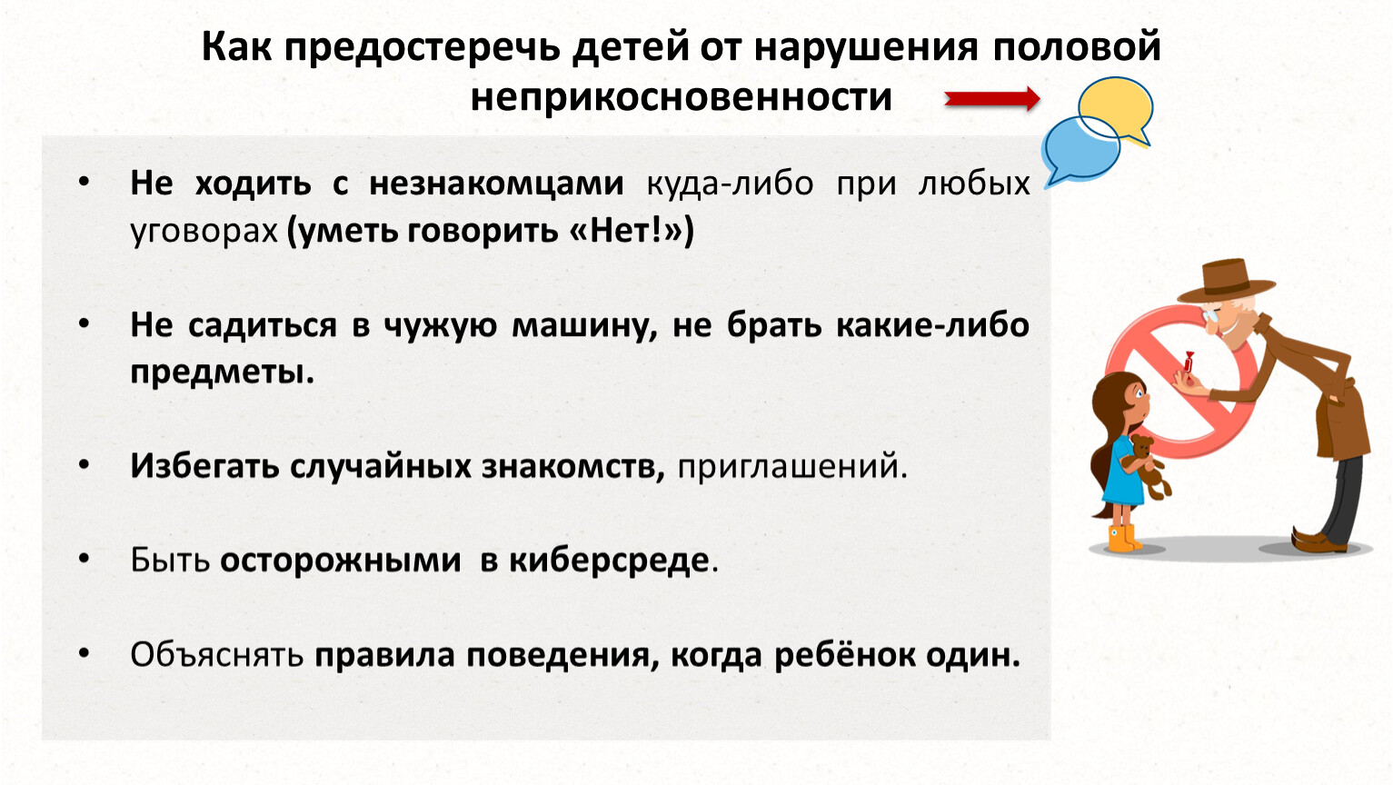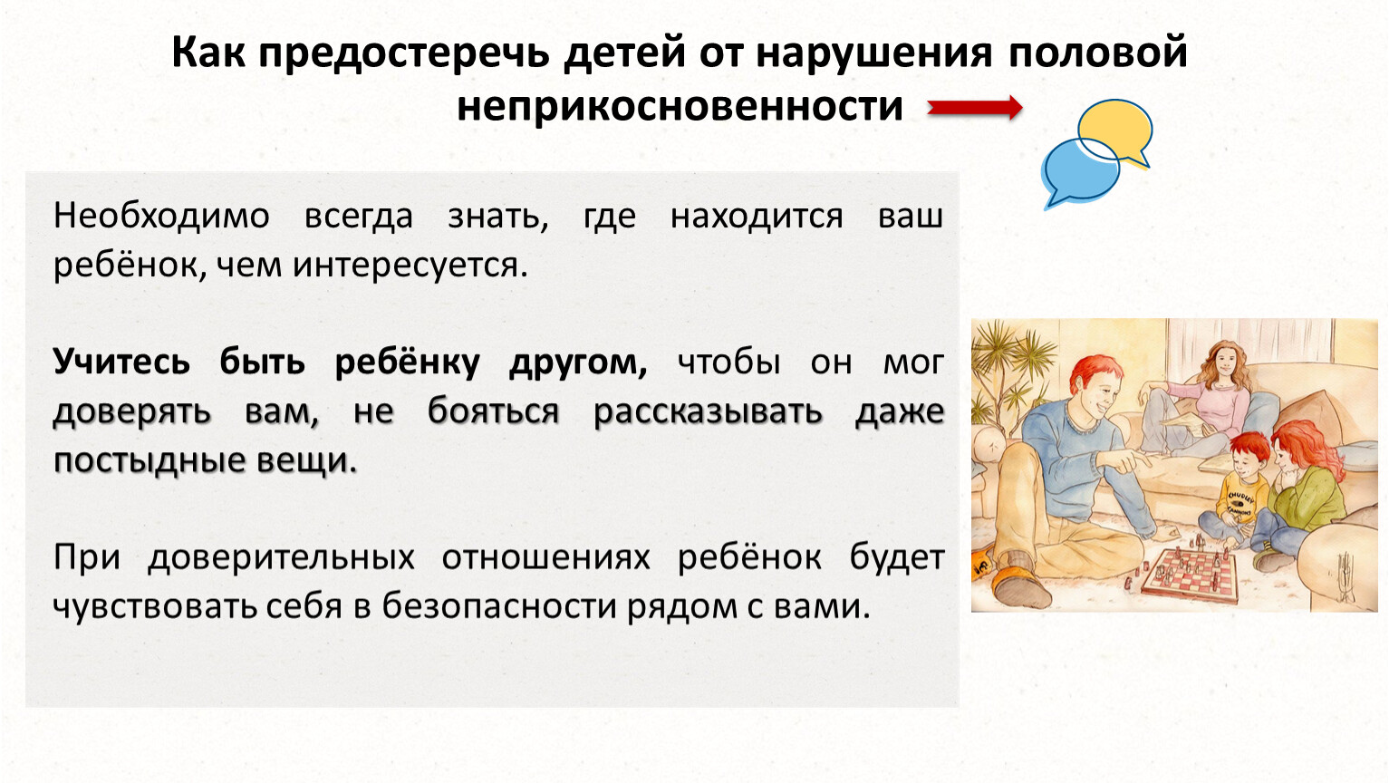 Объяснить, что, если кто-то хочет коснуться их закрытых зон, нужно всегда отказываться, убегать и рассказывать родителям.