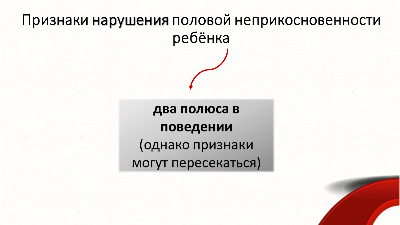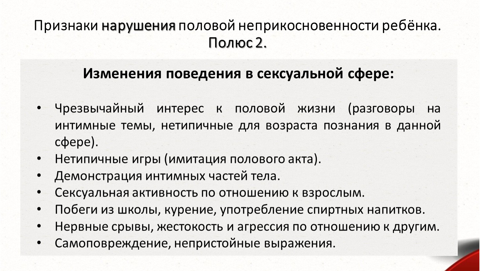 Признаки нарушения половой неприкосновенности ребёнка. Полюс 2.