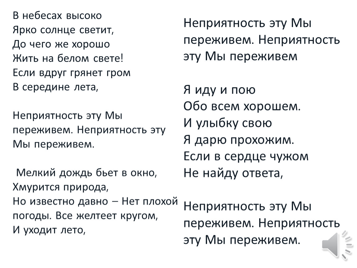 Неприятность эту Мы переживем. Неприятность эту Мы переживем