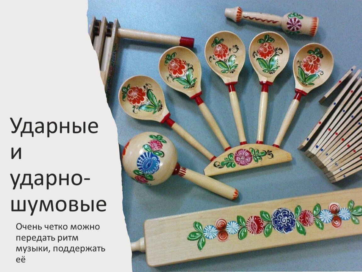 Голос, и для того, чтоб мелодия звучала ритмично, наши предки хлопали в ладоши, издавали щелчки пальцами рук, шлепки по коленям, притоптывали ногами. Шлепки, щелчки, хлопки, притопы, - чем не ударные звуки?
