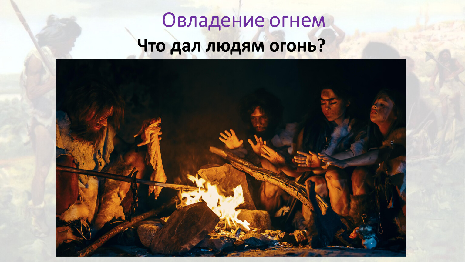 приспособление к природе (огонь, одежды, пещеры)