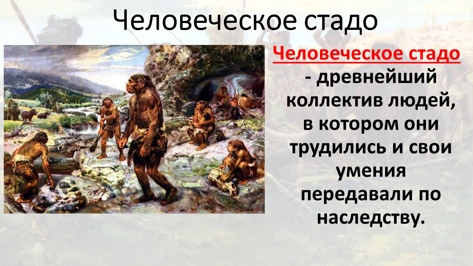 Человеческое стадо - древнейший коллектив людей, в котором они трудились и свои умения передавали по наследству.
