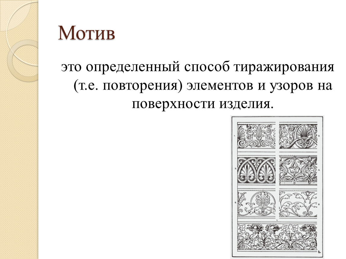 это определенный способ тиражирования (т.е. повторения) элементов и узоров на поверхности изделия.