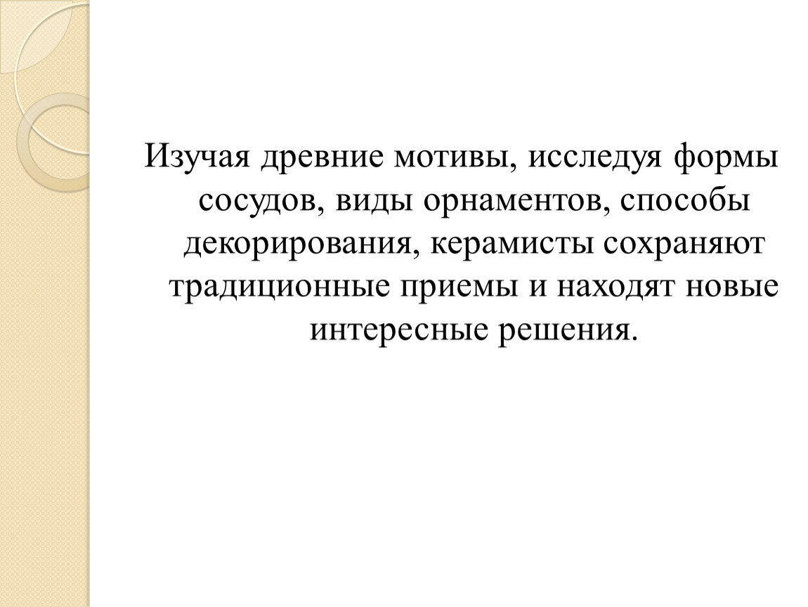 Изучая древние мотивы, исследуя формы сосудов, виды орнаментов, способы декорирования, керамисты сохраняют традиционные приемы и находят новые интересные решения.