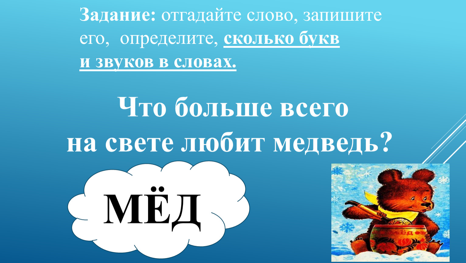 Задание: отгадайте слово, запишите его, определите, сколько букв