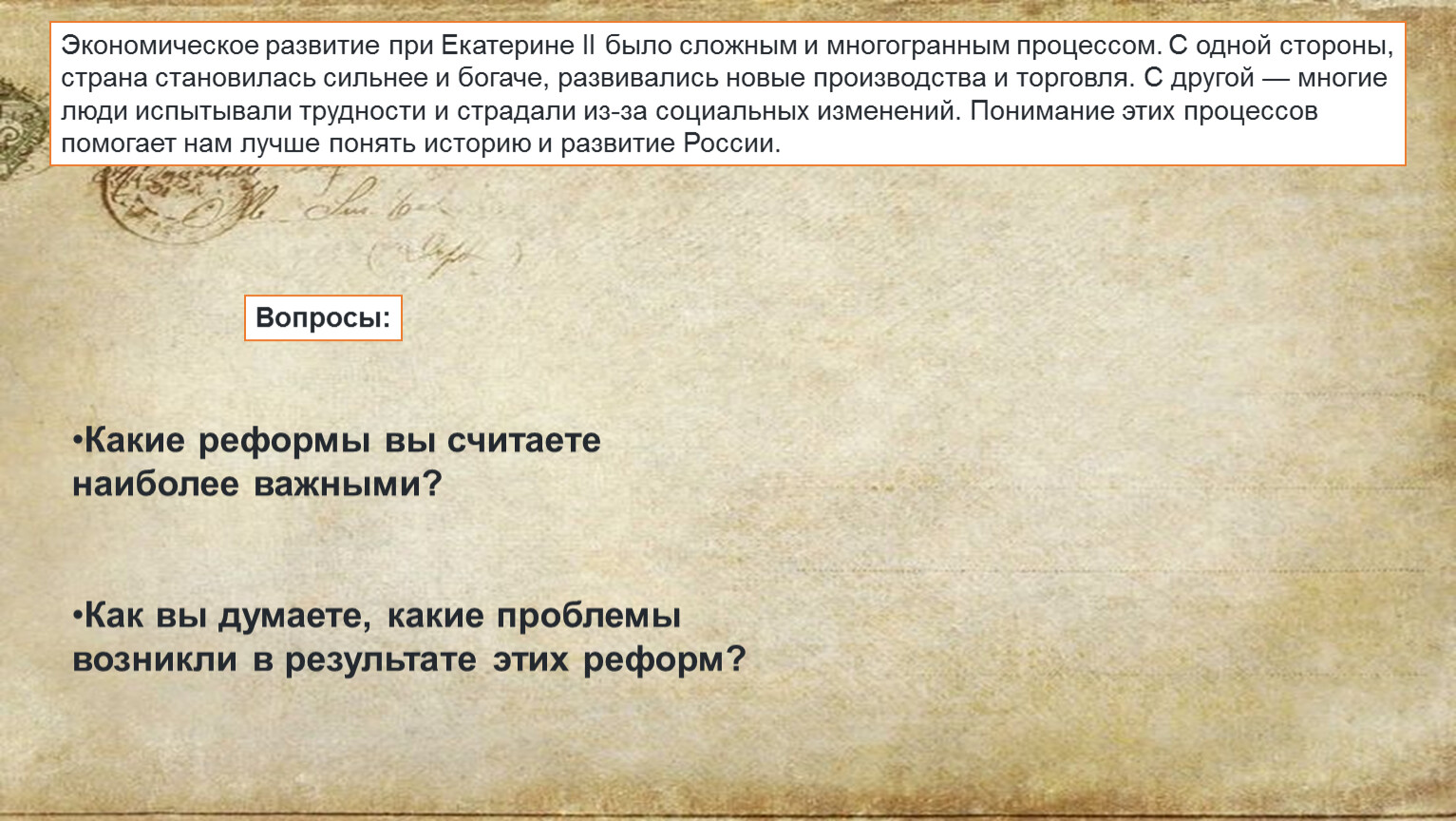 2. Как вы думаете, какое влияние имела Екатерина II на экономическое развитие страны?