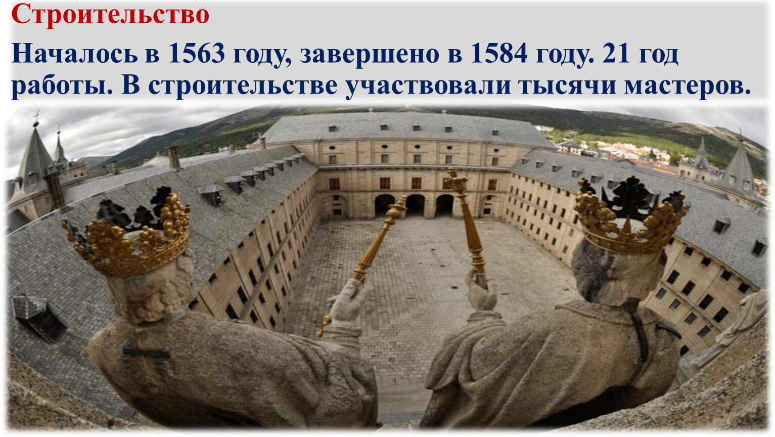 Память о победе над французами при Сен-Кантене (1557). Желание укрепить католическую веру. Создание центра духовной и политической жизни Испании.