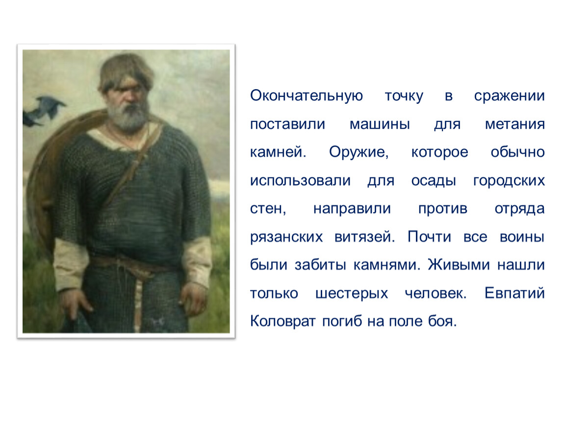 Среди защитников был Евпатий Коловрат.