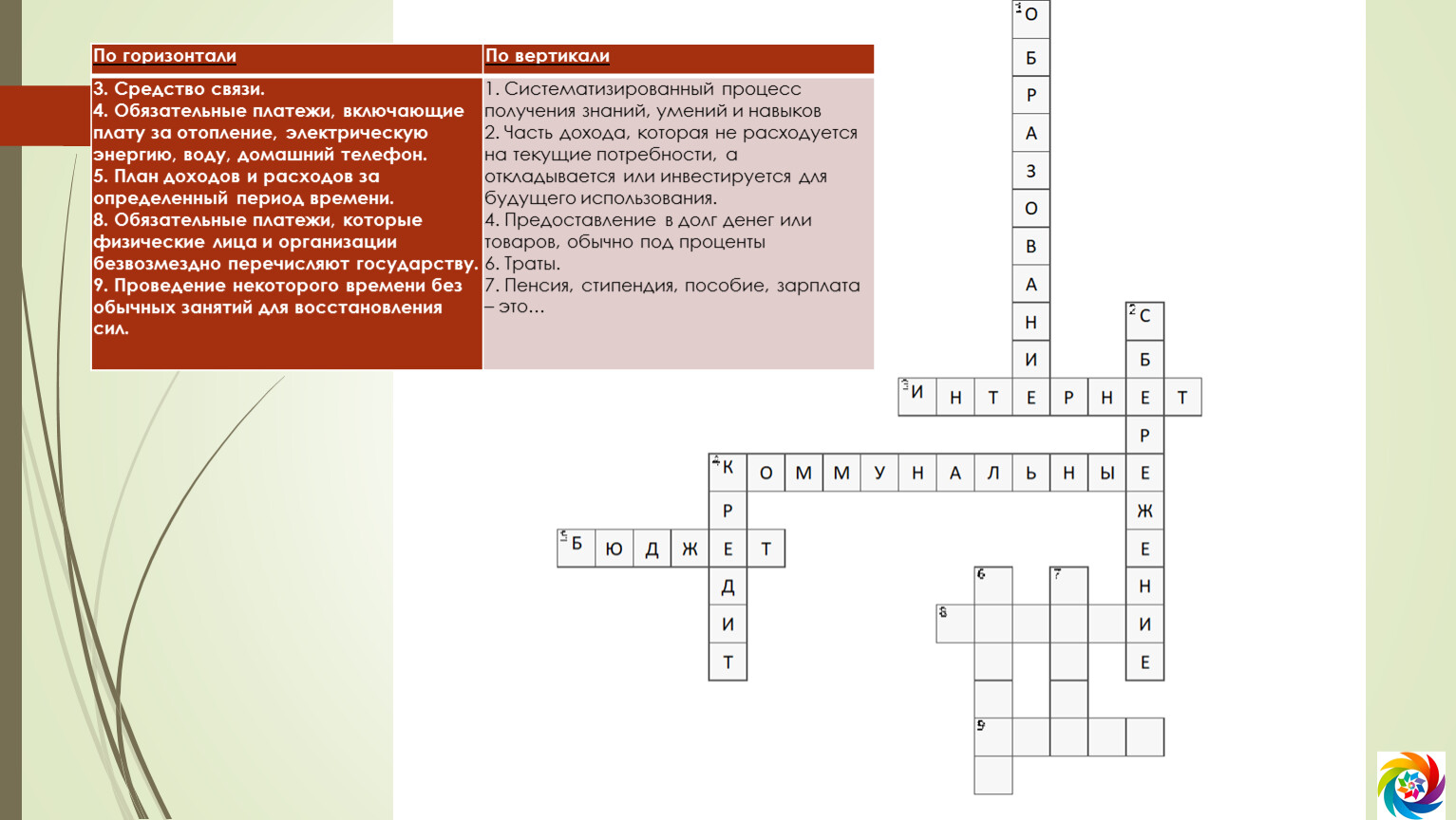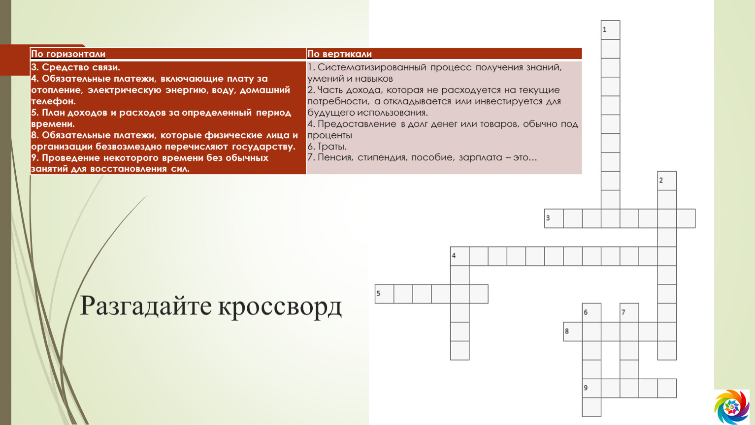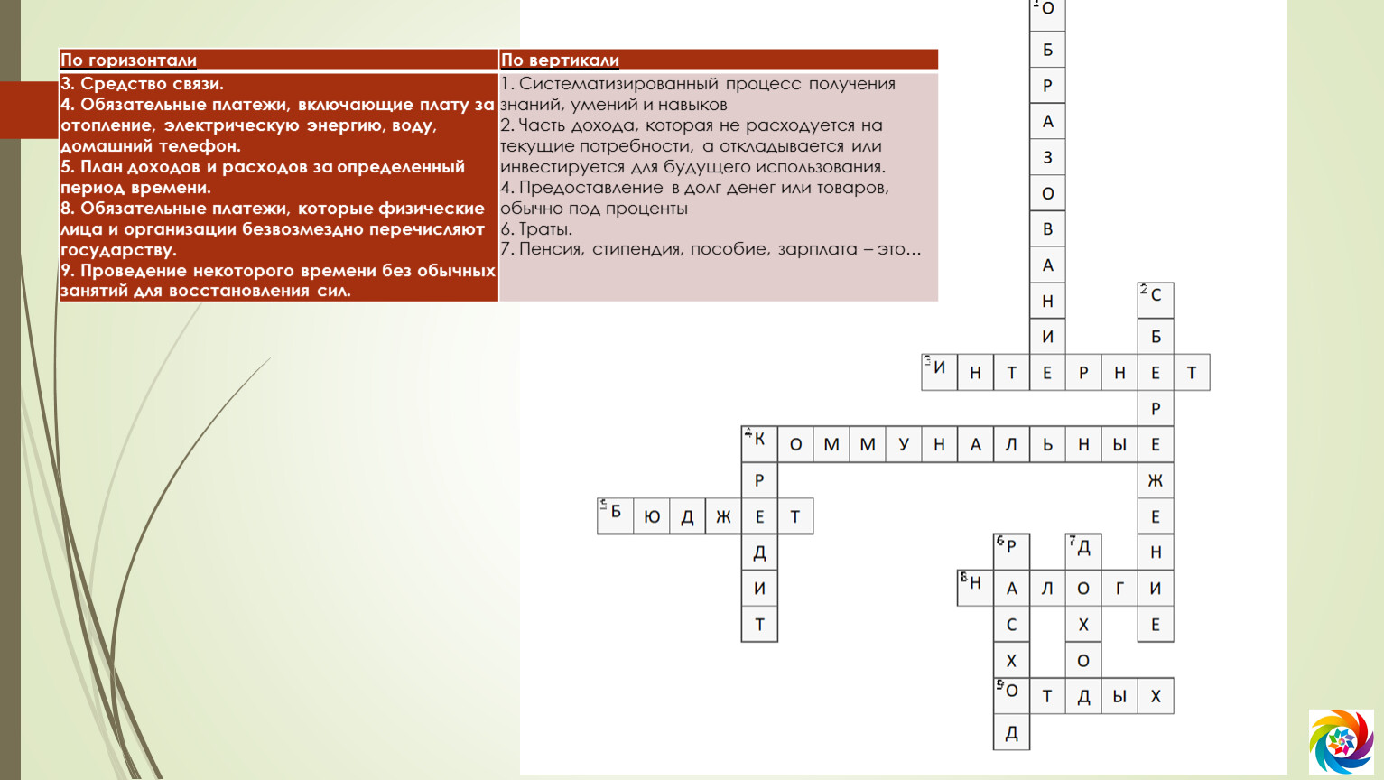 3. Средство связи. | 1. Систематизированный процесс получения знаний, умений и навыков |