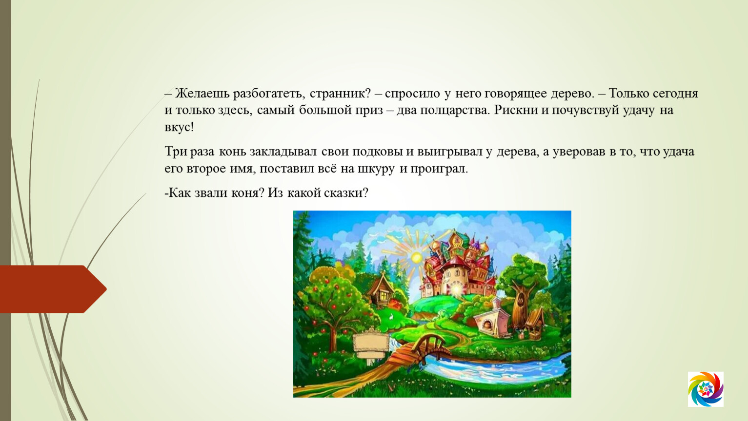 – Желаешь разбогатеть, странник? – спросило у него говорящее дерево. – Только сегодня и только здесь, самый большой приз – два полцарства. Рискни и почувствуй удачу на вкус!