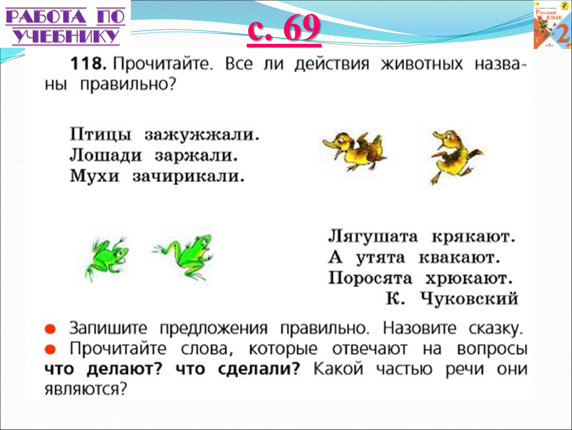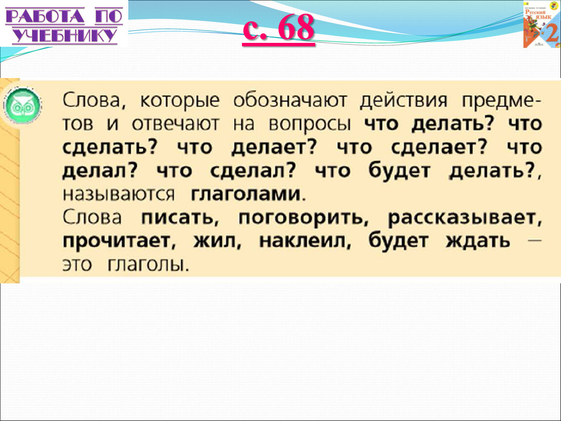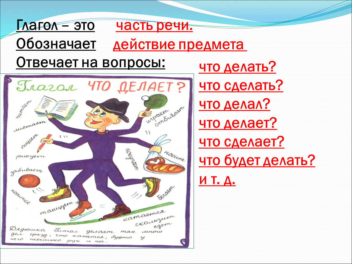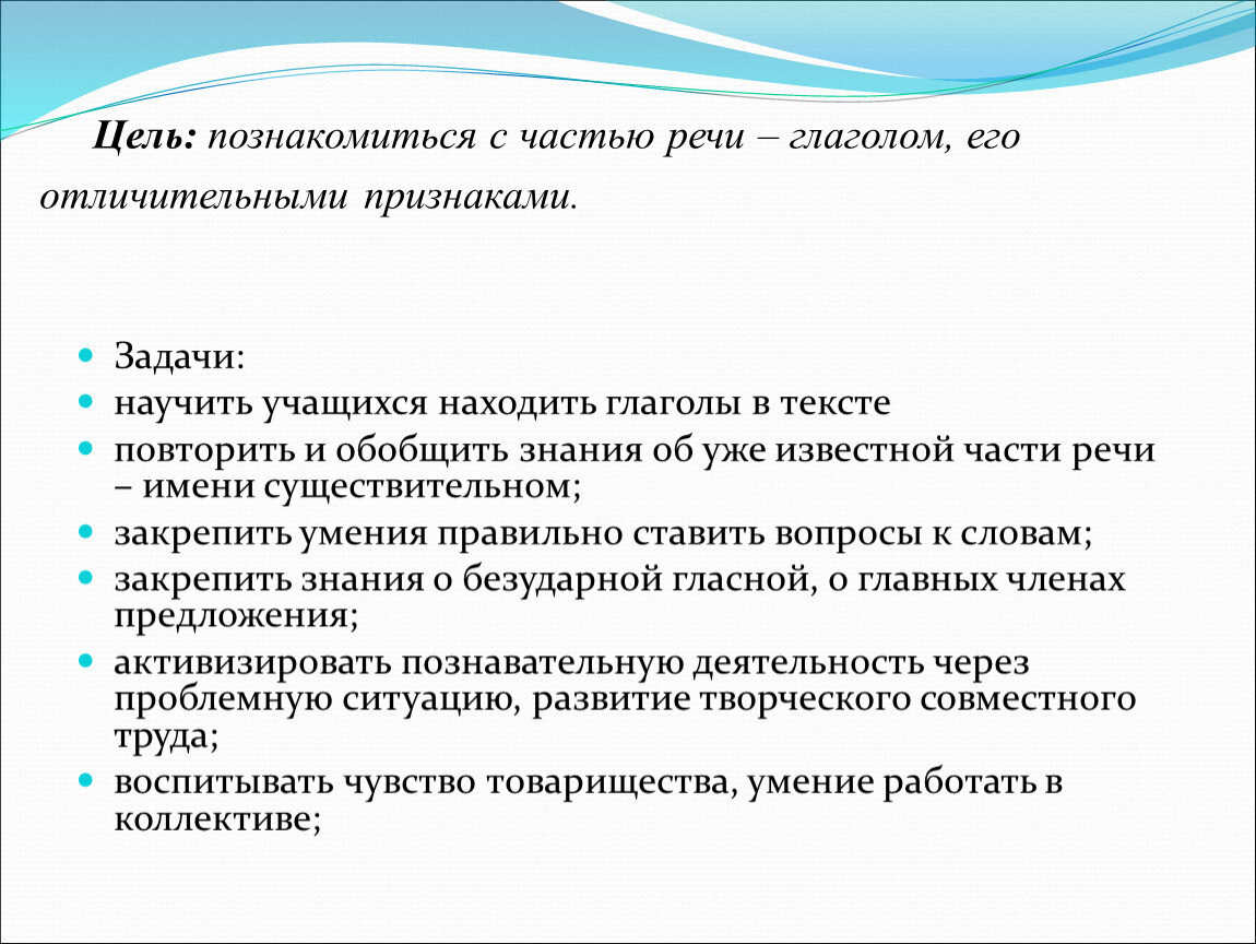 Цель: познакомиться с частью речи – глаголом, его отличительными признаками.