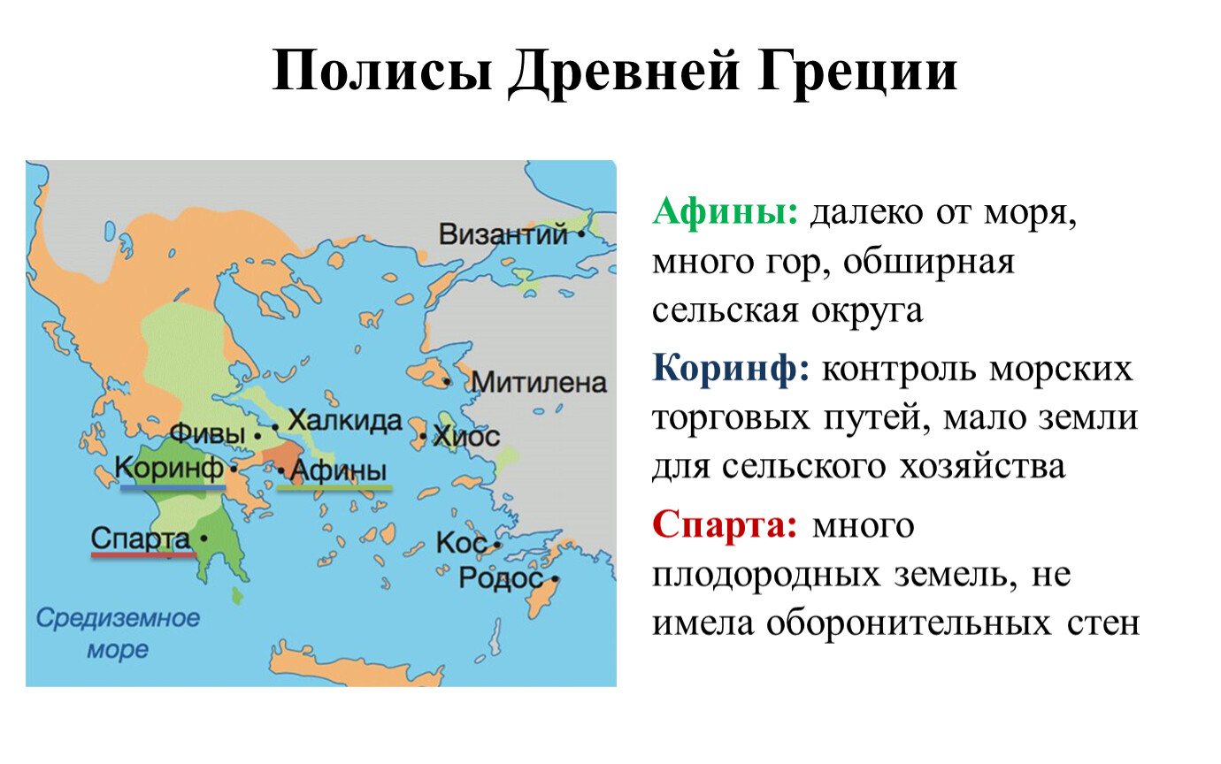 Коринф: контроль морских торговых путей, мало земли для сельского хозяйства