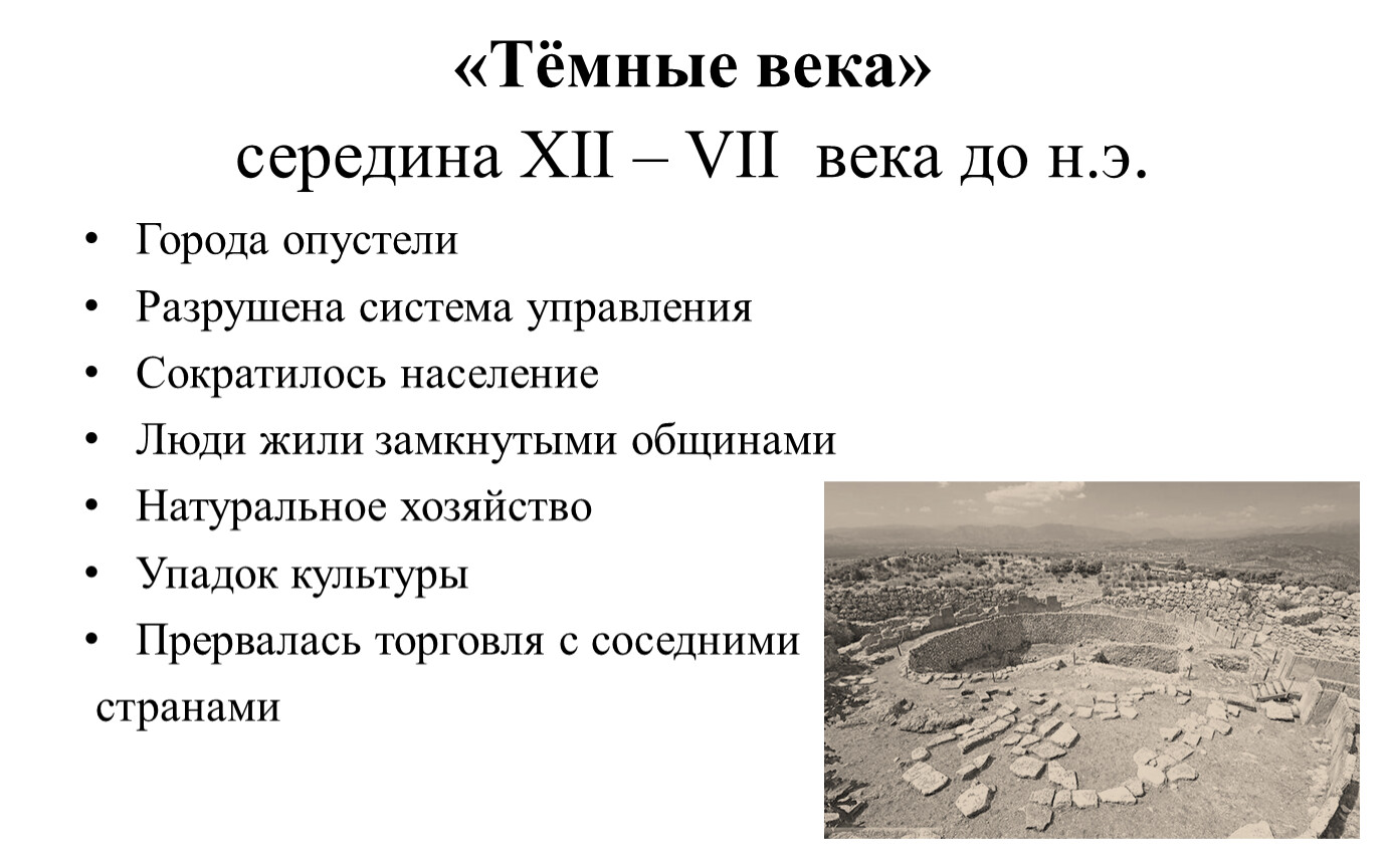 «Тёмные века»середина XII – VII века до н.э.