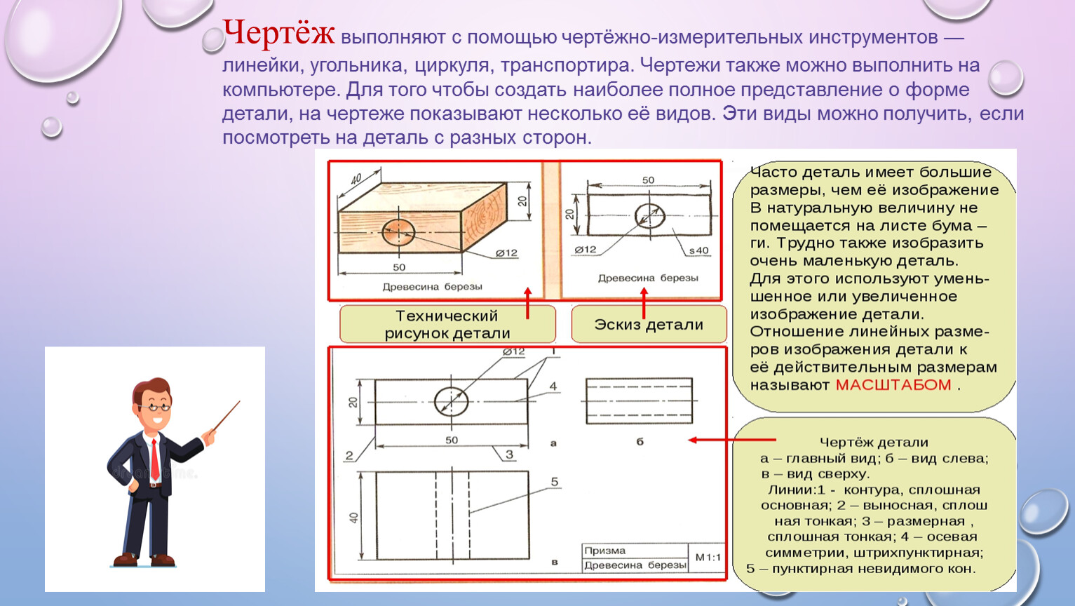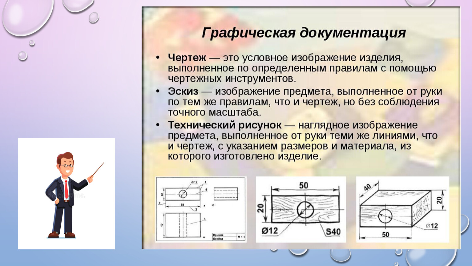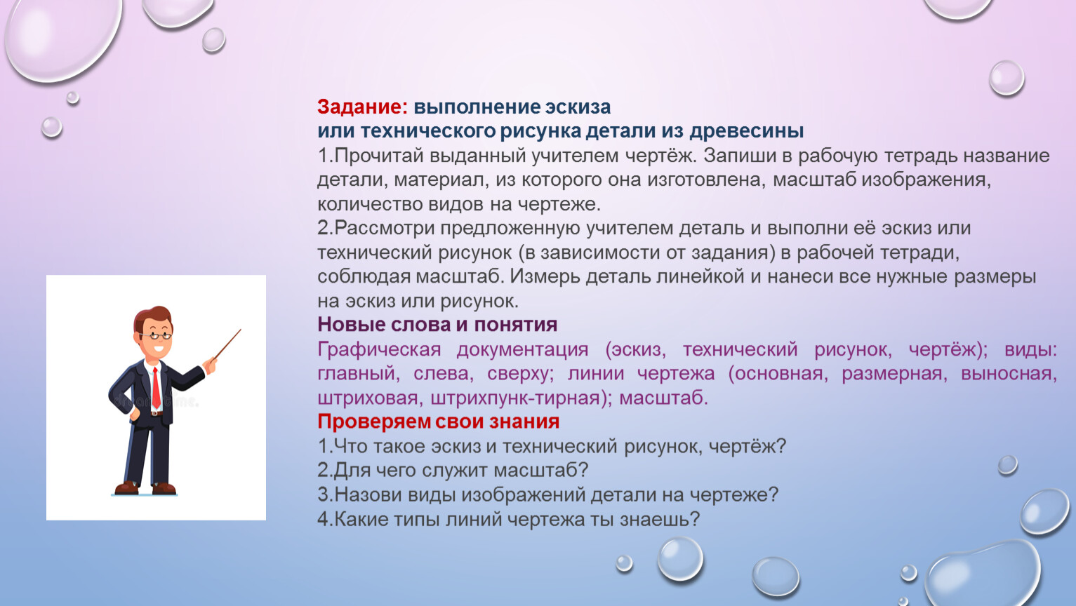 В начальной школе вы уже ознакомились с понятиями эскиза и чертежа, основными линиями чертежа. Вы рисовали эскизы и технические рисунки для изготовления несложных изделий из бумаги, древесины, проволоки (ёлочные украшения, деревянные поделки, игрушки из проволоки и др.).