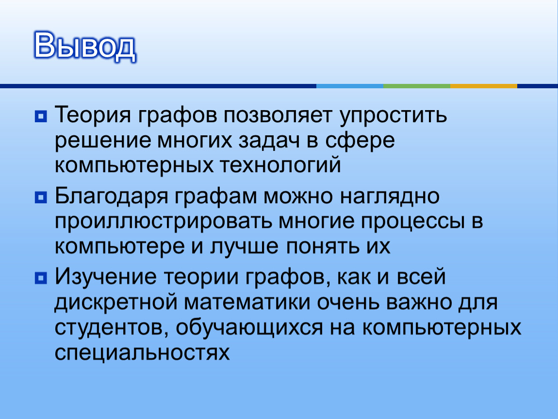 Изучение теории графов, как и всей дискретной математики очень важно для студентов, обучающихся на компьютерных специальностях
