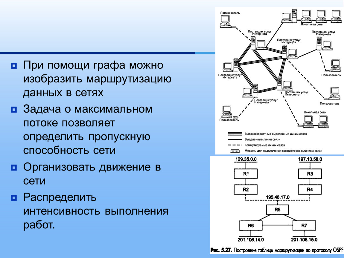 При помощи графа можно изобразить маршрутизацию данных в сетях
