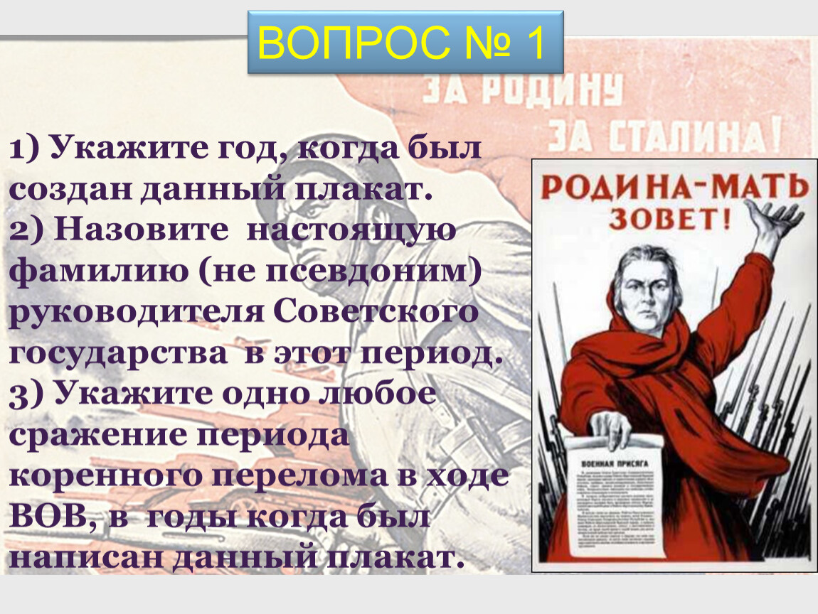 3) Укажите одно любое сражение периода коренного перелома в ходе ВОВ, в годы когда был написан данный плакат.