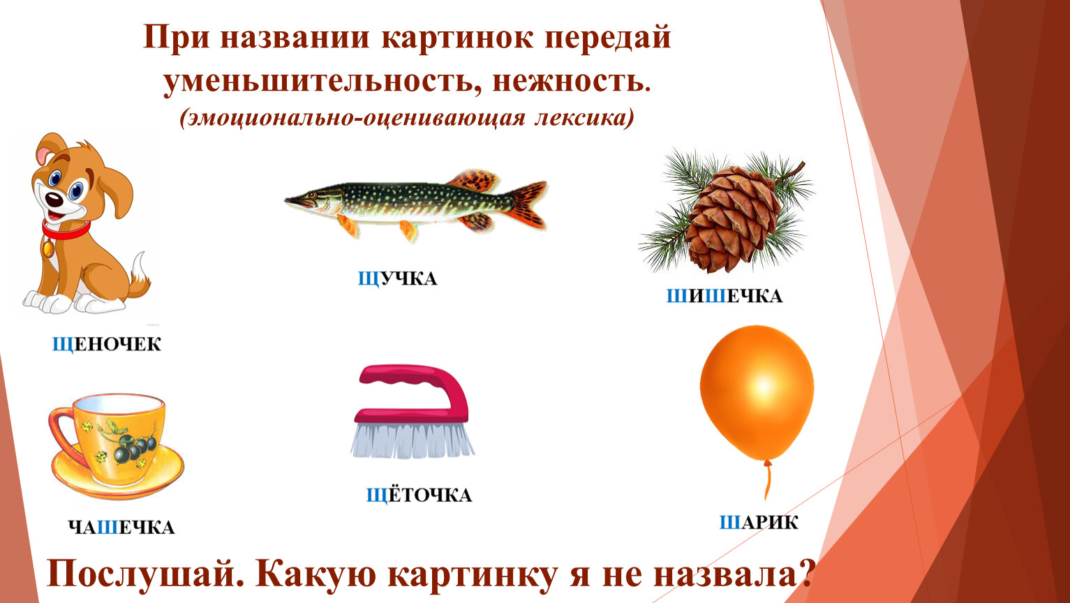 Послушай. Какую картинку я не назвала?