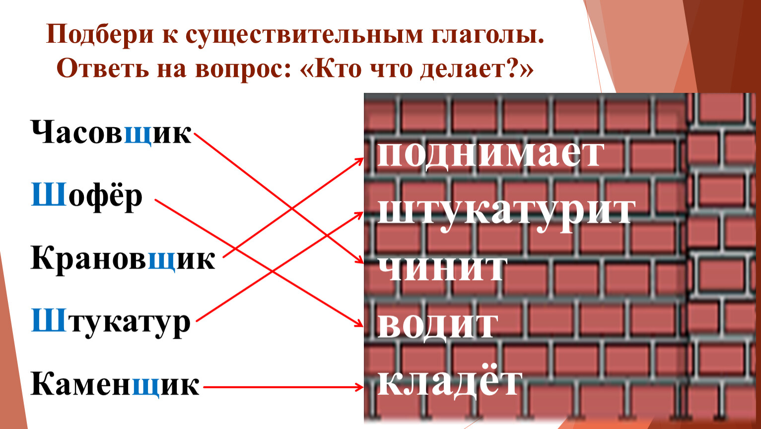 Подбери к существительным глаголы. Ответь на вопрос: «Кто что делает?»