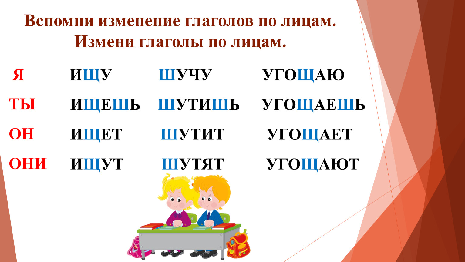 Вспомни изменение глаголов по лицам. Измени глаголы по лицам.