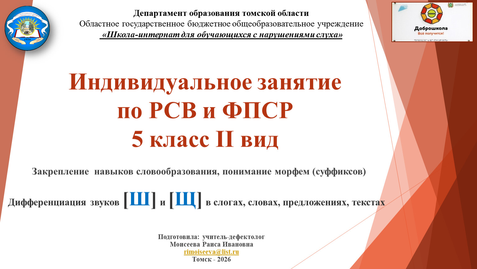 Дифференциация звуков [Ш] и [Щ] в слогах, словах, предложениях, текстах