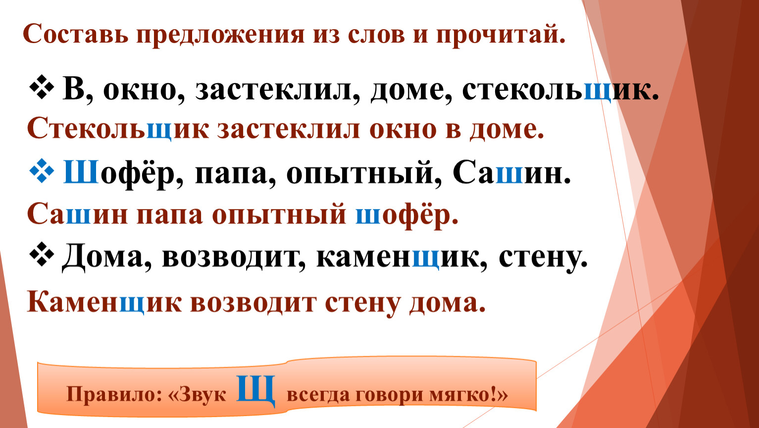 Правило: «Звук Щ всегда говори мягко!»