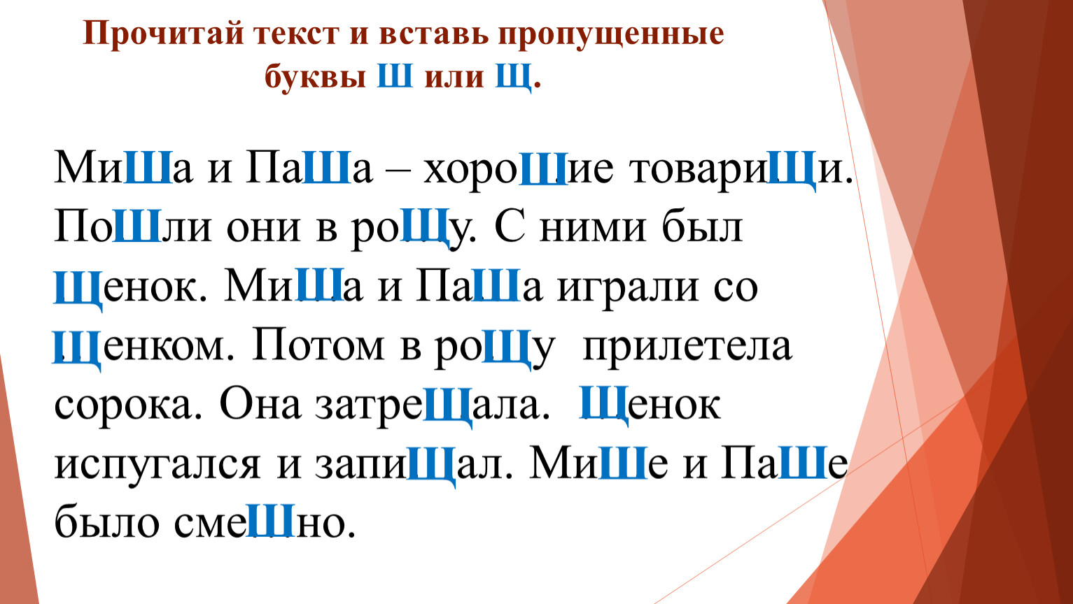Прочитай текст и вставь пропущенные буквы Ш или Щ.