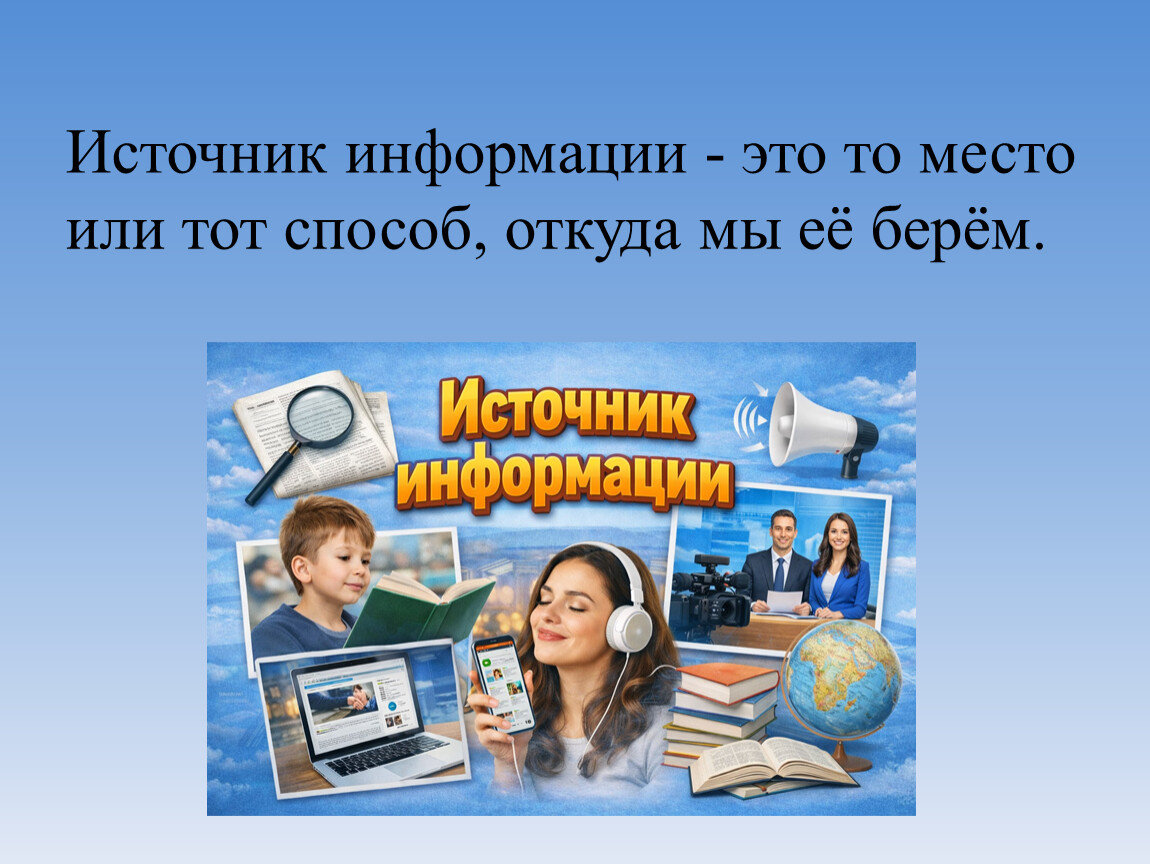 Источник информации - это то место или тот способ, откуда мы её берём.
