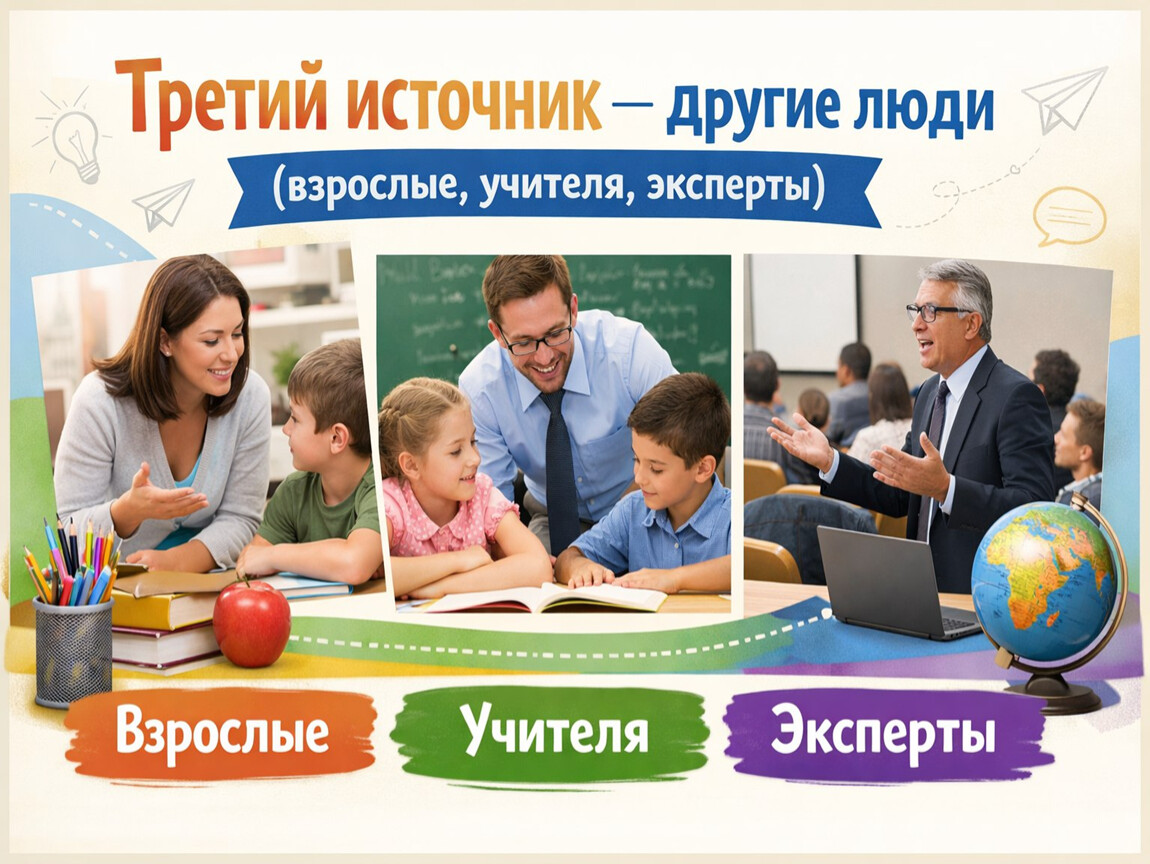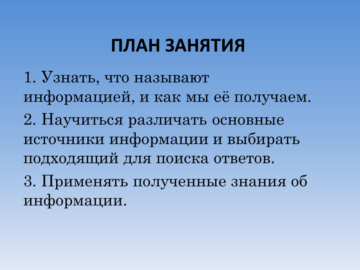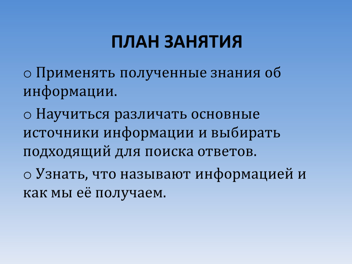 Научиться различать основные источники информации и выбирать подходящий для поиска ответов.