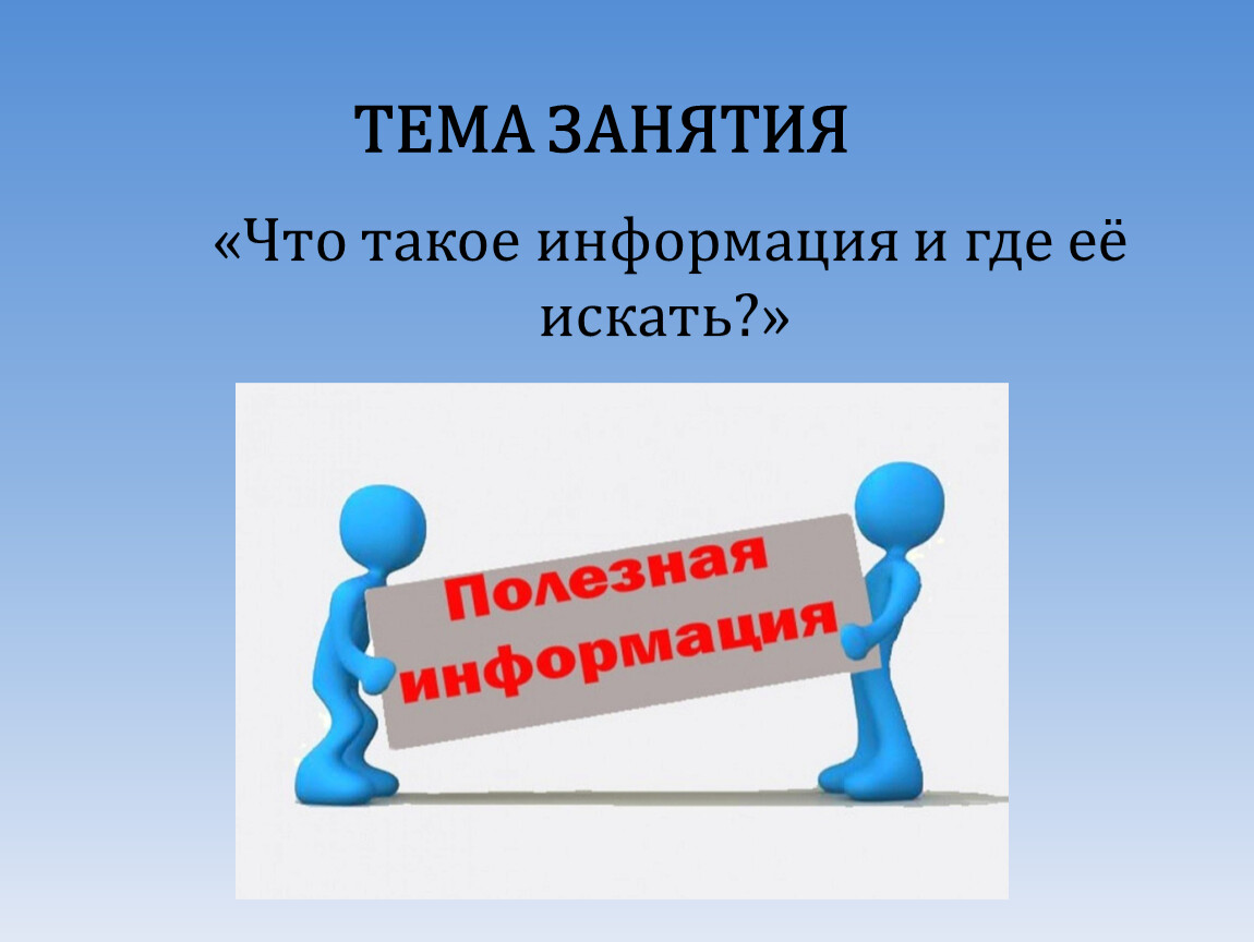 Информация — это все сведения, знания, новости, которые мы получаем об окружающем мире.
