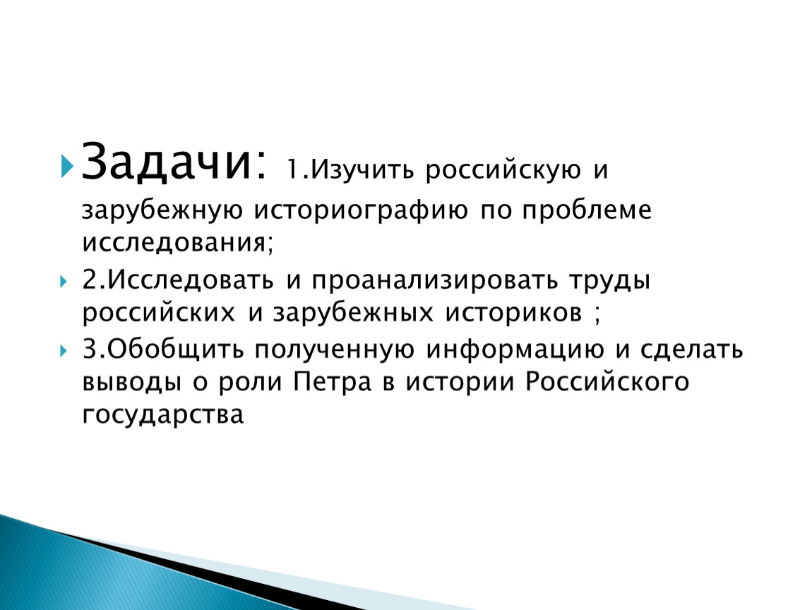Задачи: 1.Изучить российскую и зарубежную историографию по проблеме исследования;