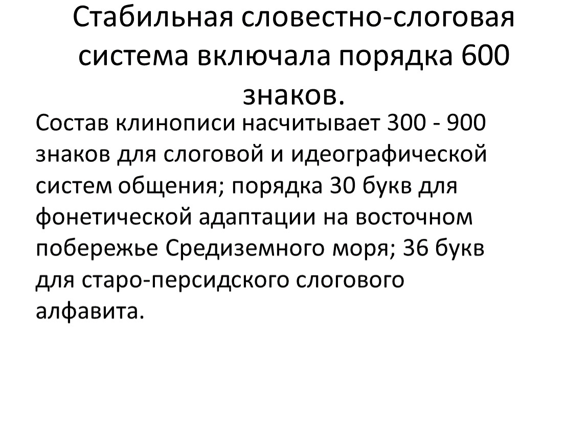 Стабильная словестно-слоговая система включала порядка 600 знаков.