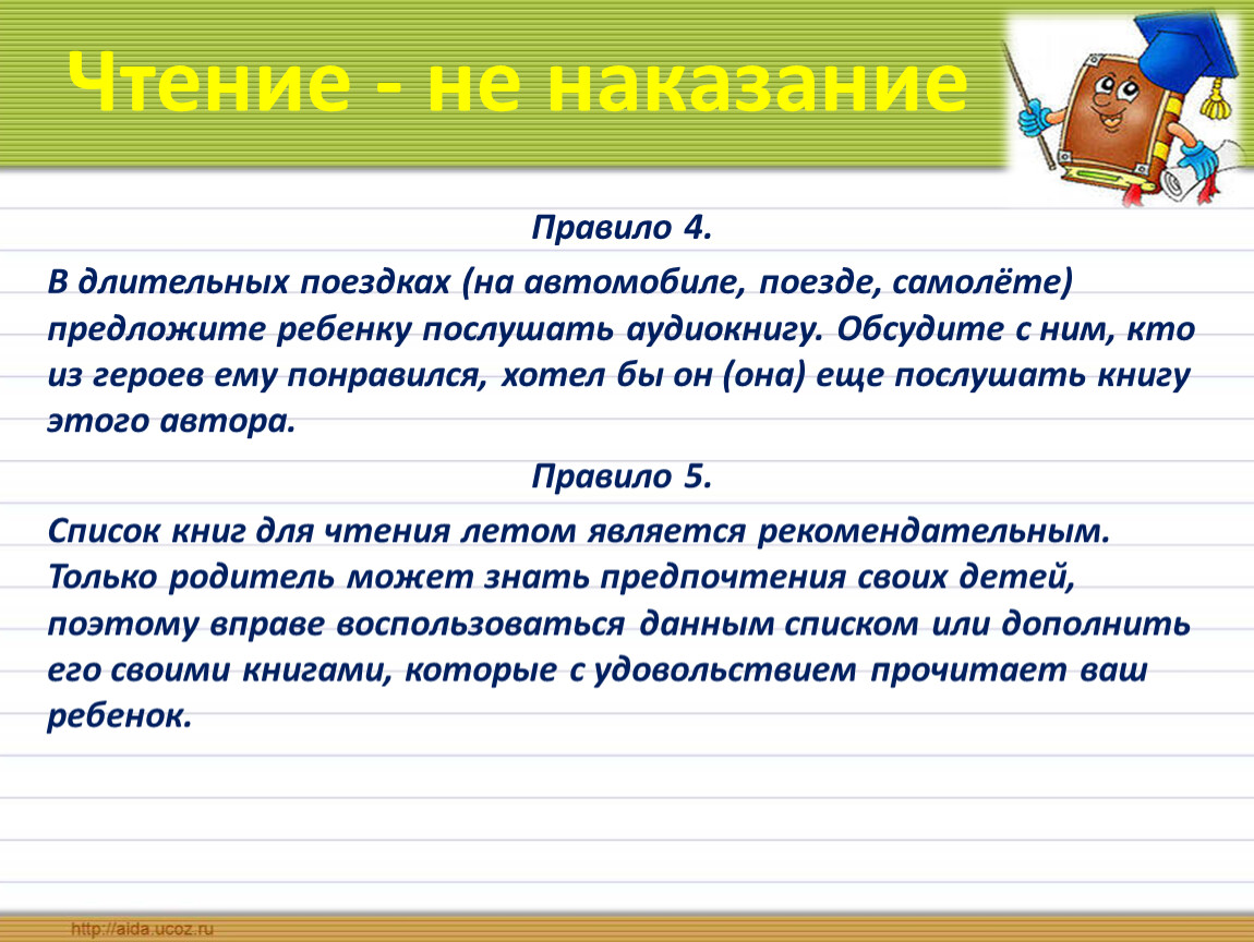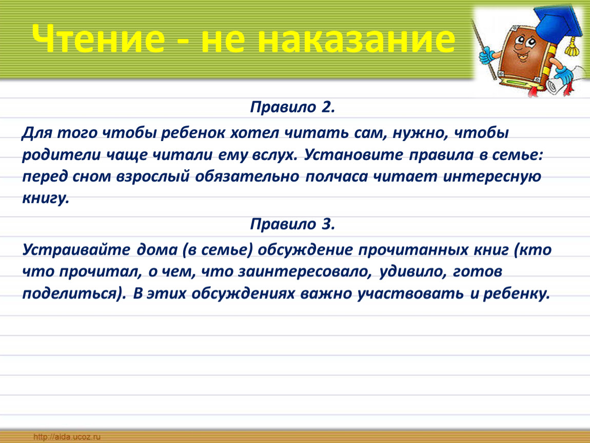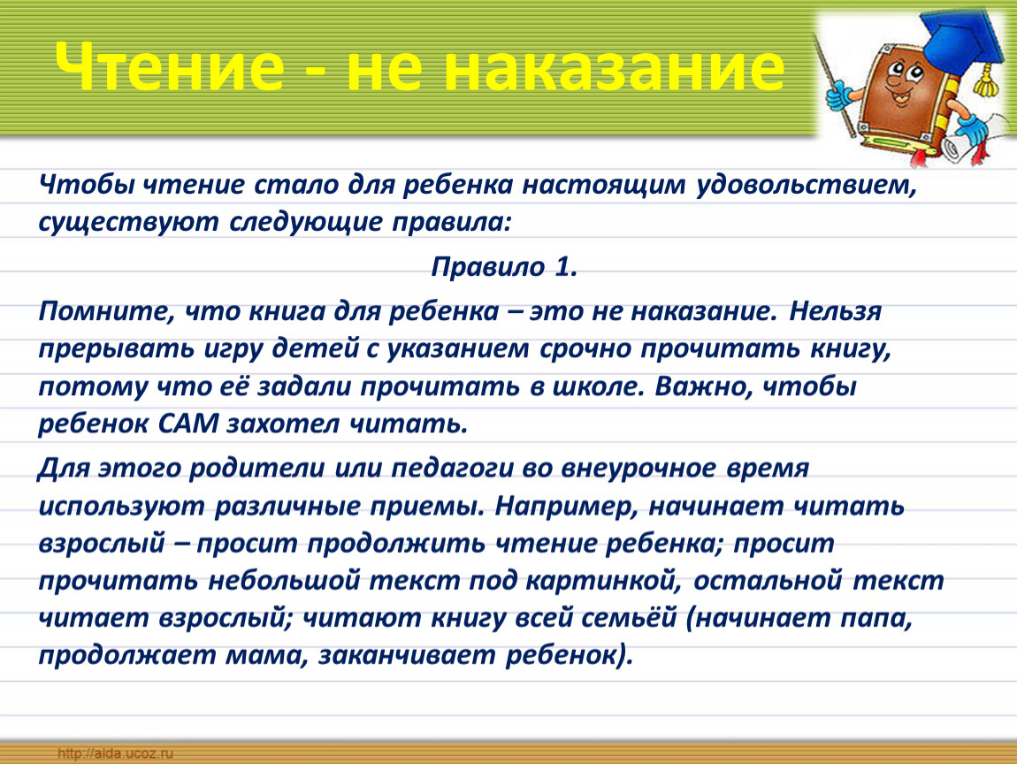 Чтобы чтение стало для ребенка настоящим удовольствием, существуют следующие правила: