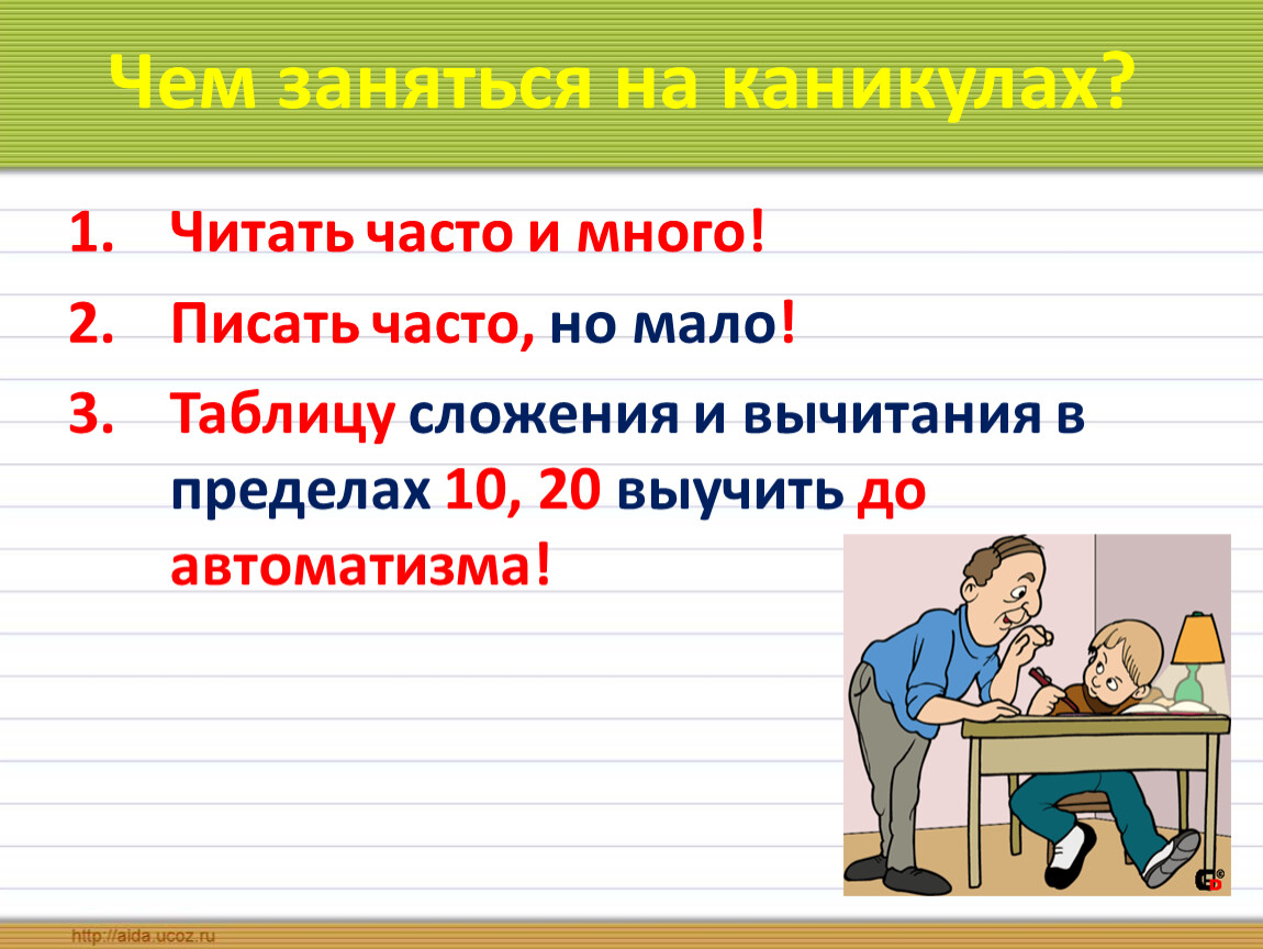 Таблицу сложения и вычитания в пределах 10, 20 выучить до автоматизма!