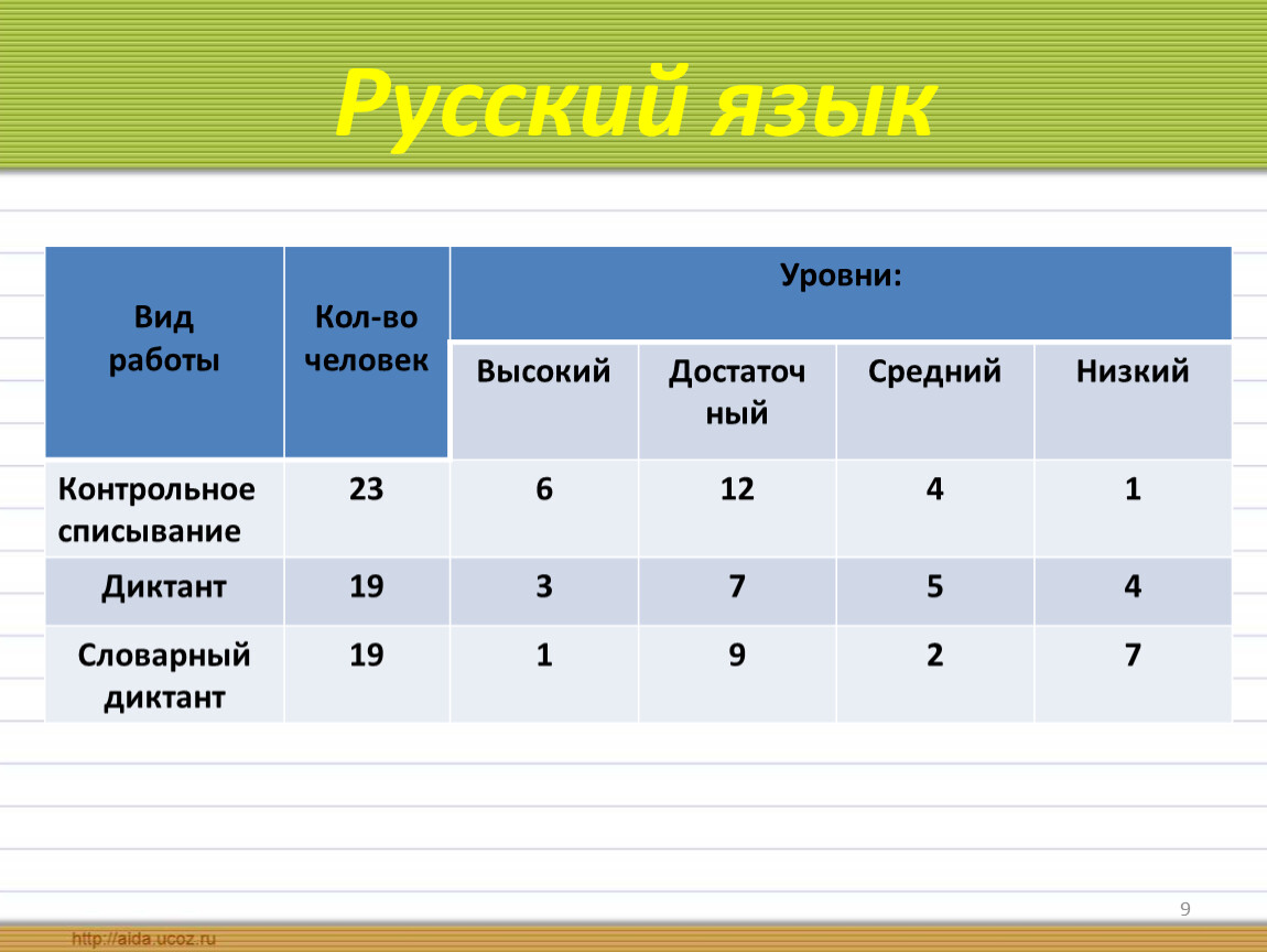 Диктант | 19 | 3 | 7 | 5 | 4 |