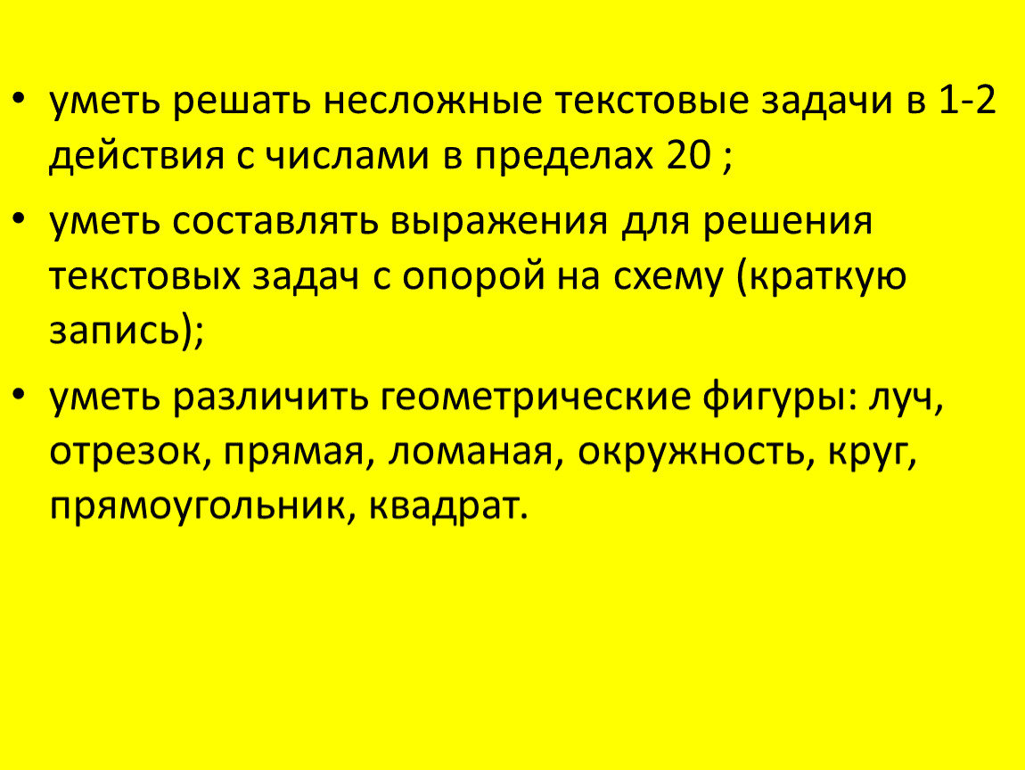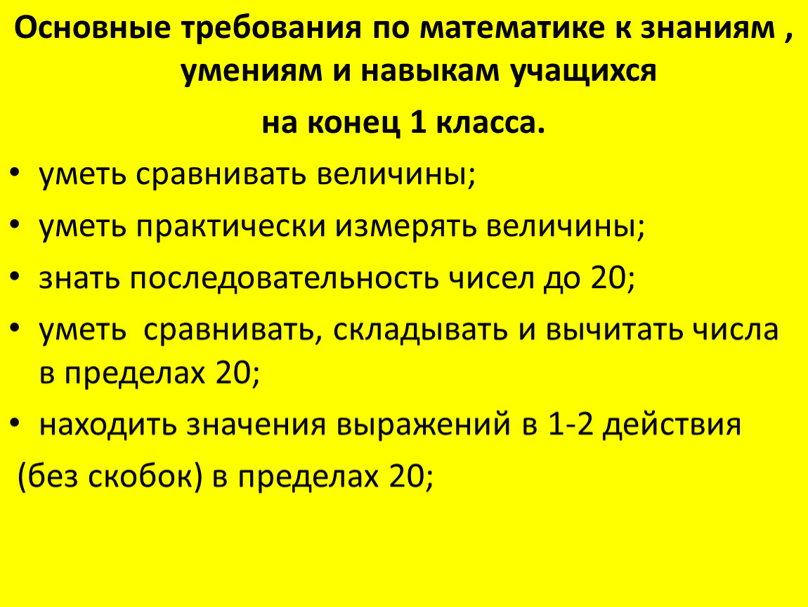 Основные требования к знаниям и умениям учащихся к концу обучения в 1 классе.
