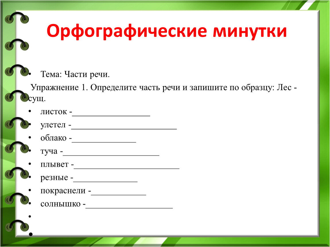 Продиктовать это предложение по частям для записи.
