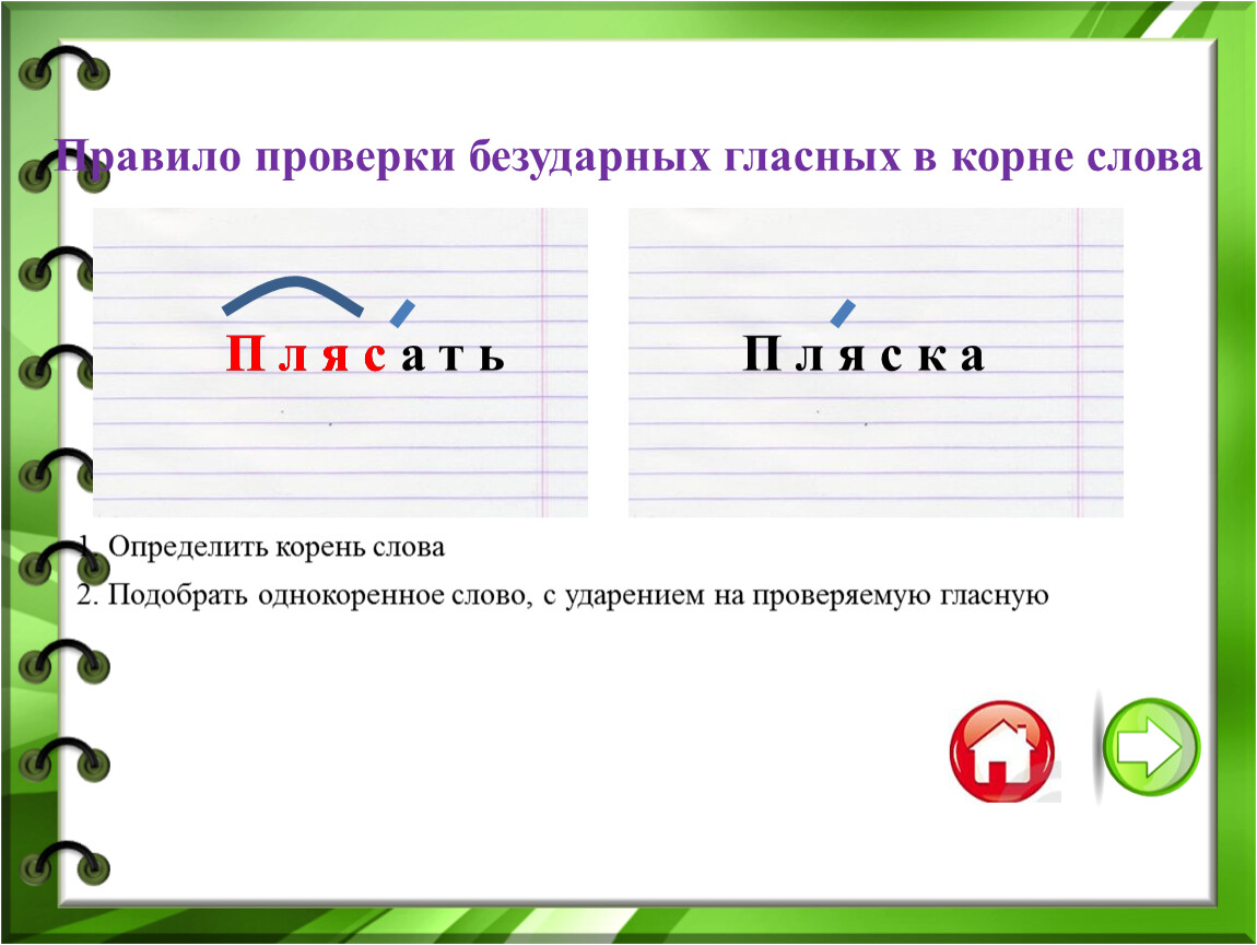 1.Проверяемая безударная гласная в корне слова.