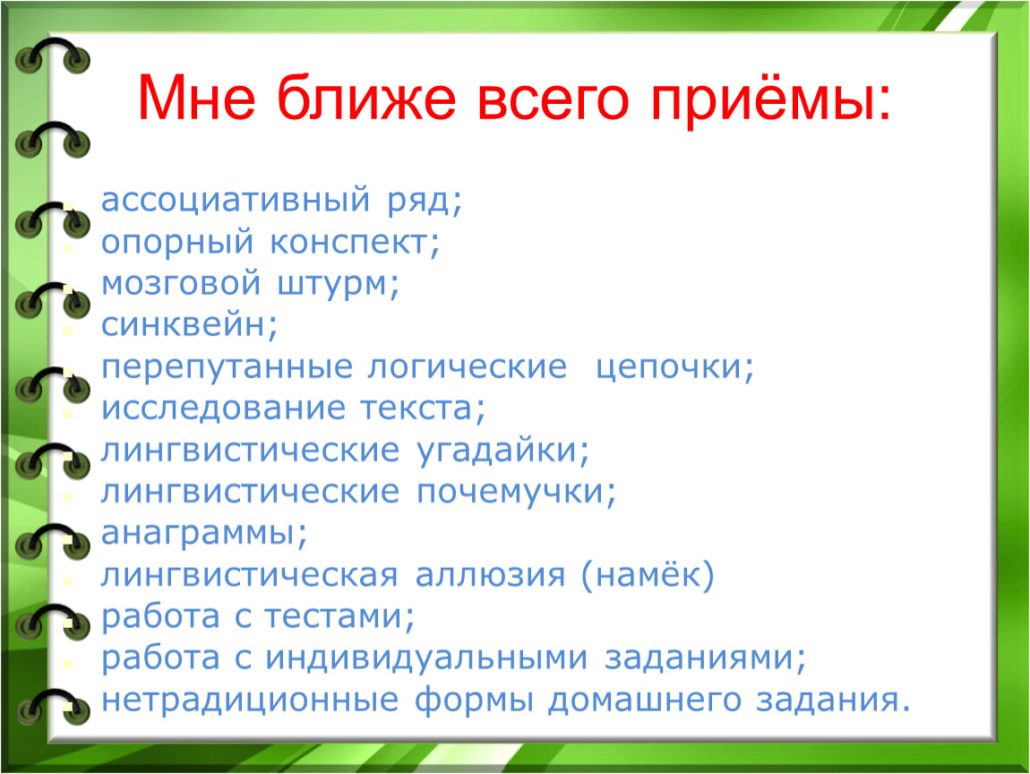 применяемые методы обучения;