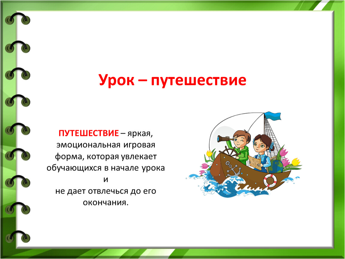 ПУТЕШЕСТВИЕ – яркая, эмоциональная игровая форма, которая увлекает обучающихся в начале урока и